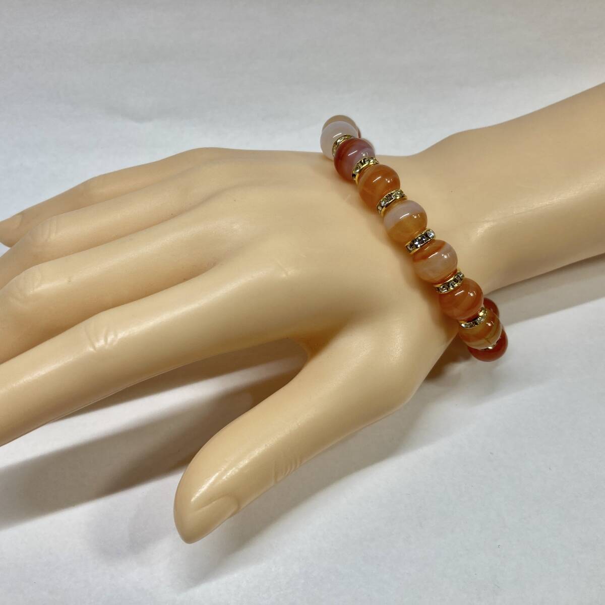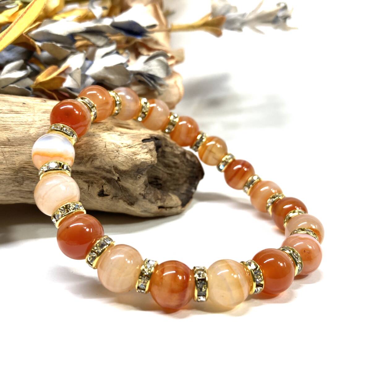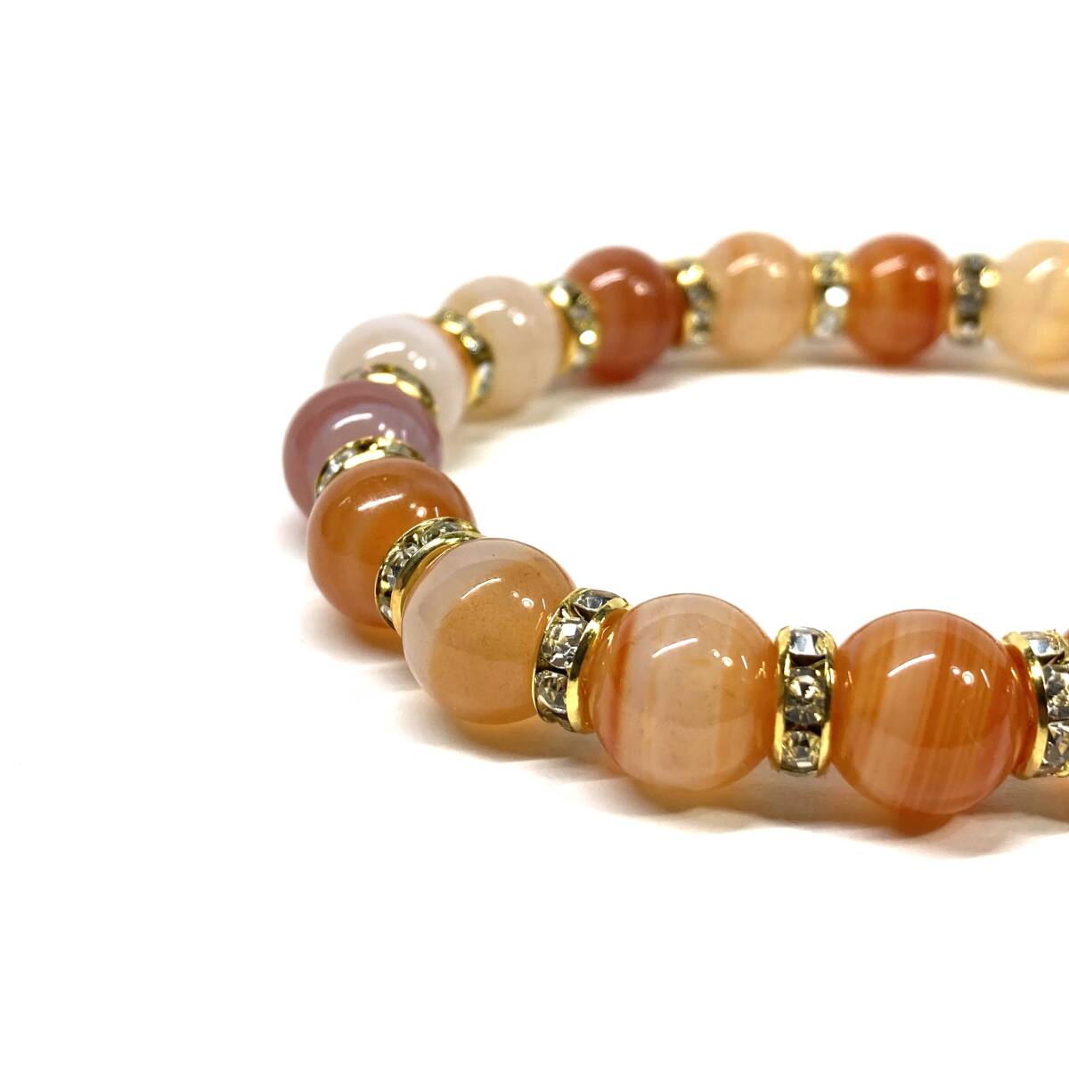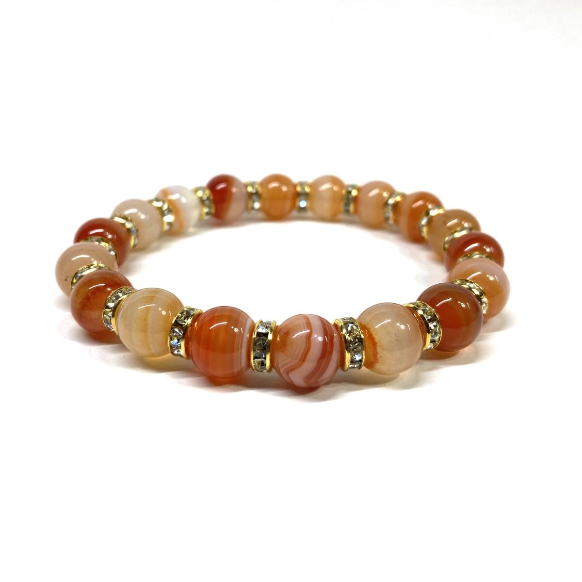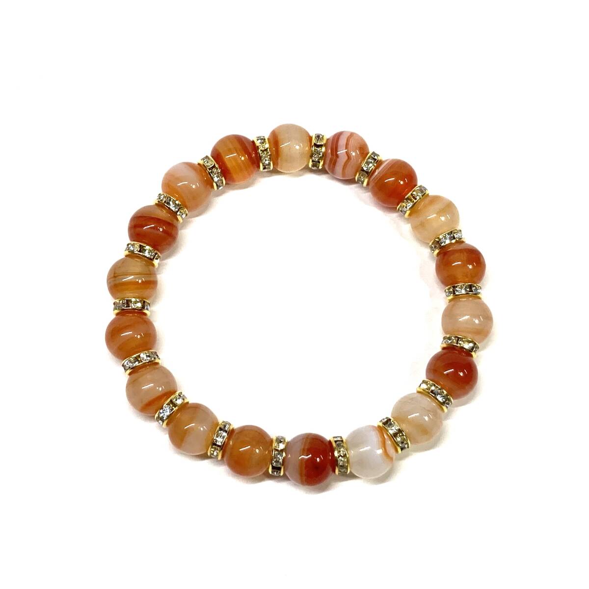 こちらは、10mm玉のカーネリアン・サードニクスを使用したパワーストーンブレスレットです。シンプルなデザインは、男女問わずどんなコーディネートとも合わせ易いブレスレットです。サイズは内周約18cmです。(サイズ変更の場合は取引ナビにてご連絡をお願いします。) 数に限りがございますので気になる方はお早めにどうぞ。