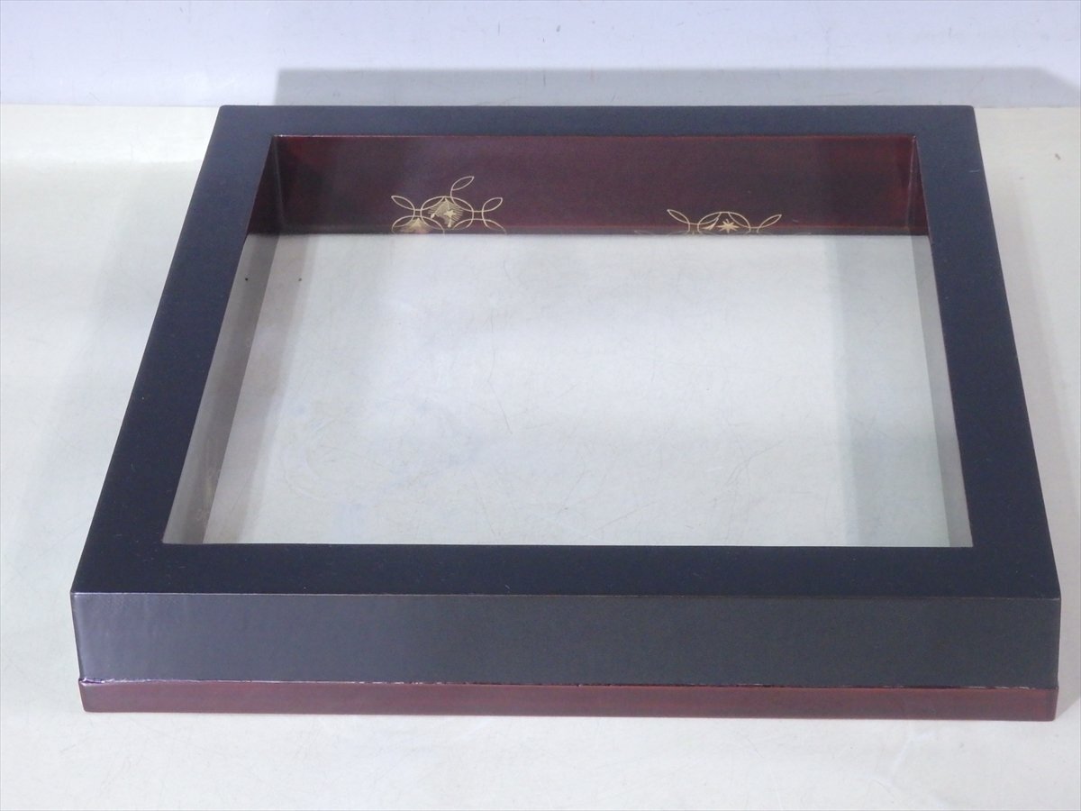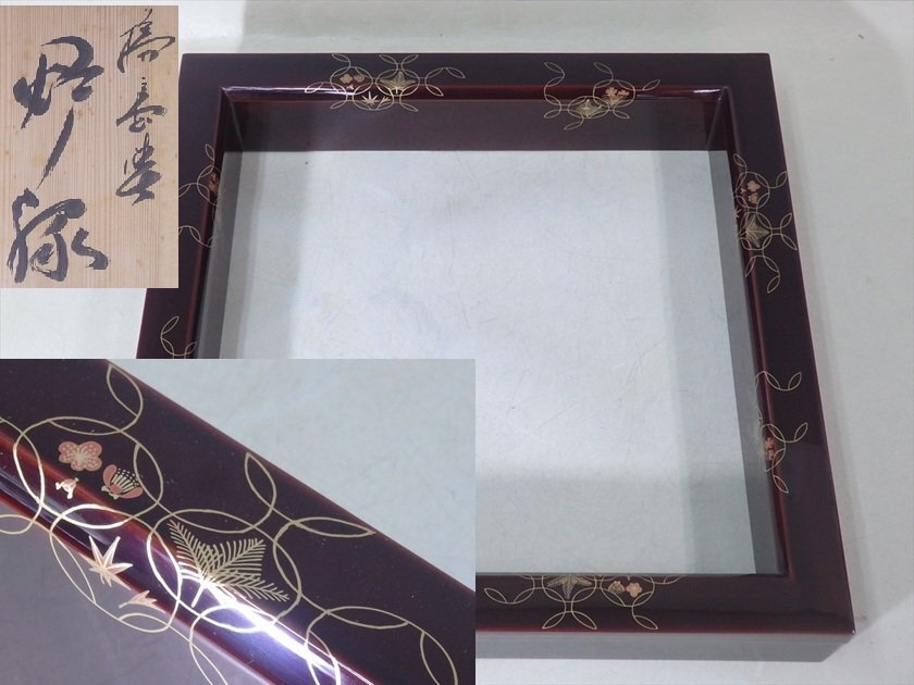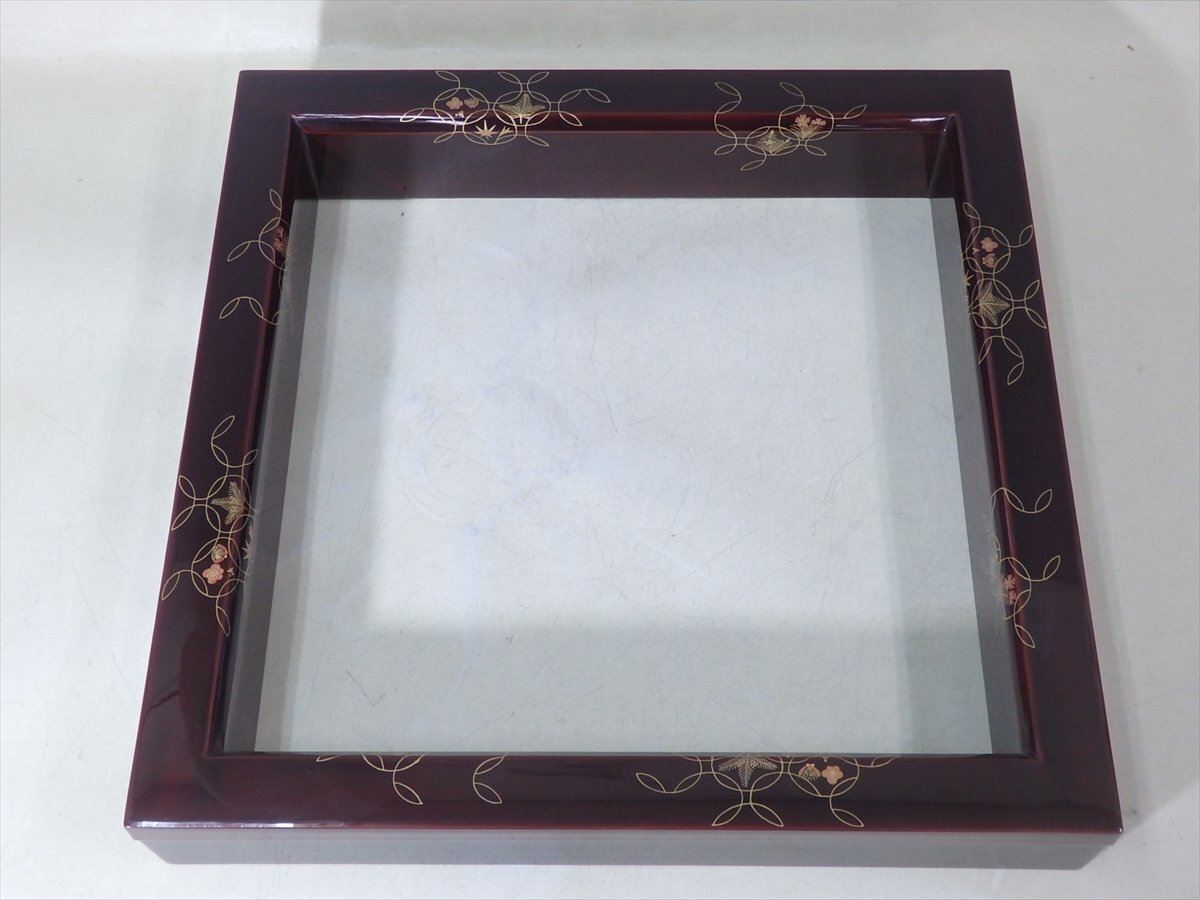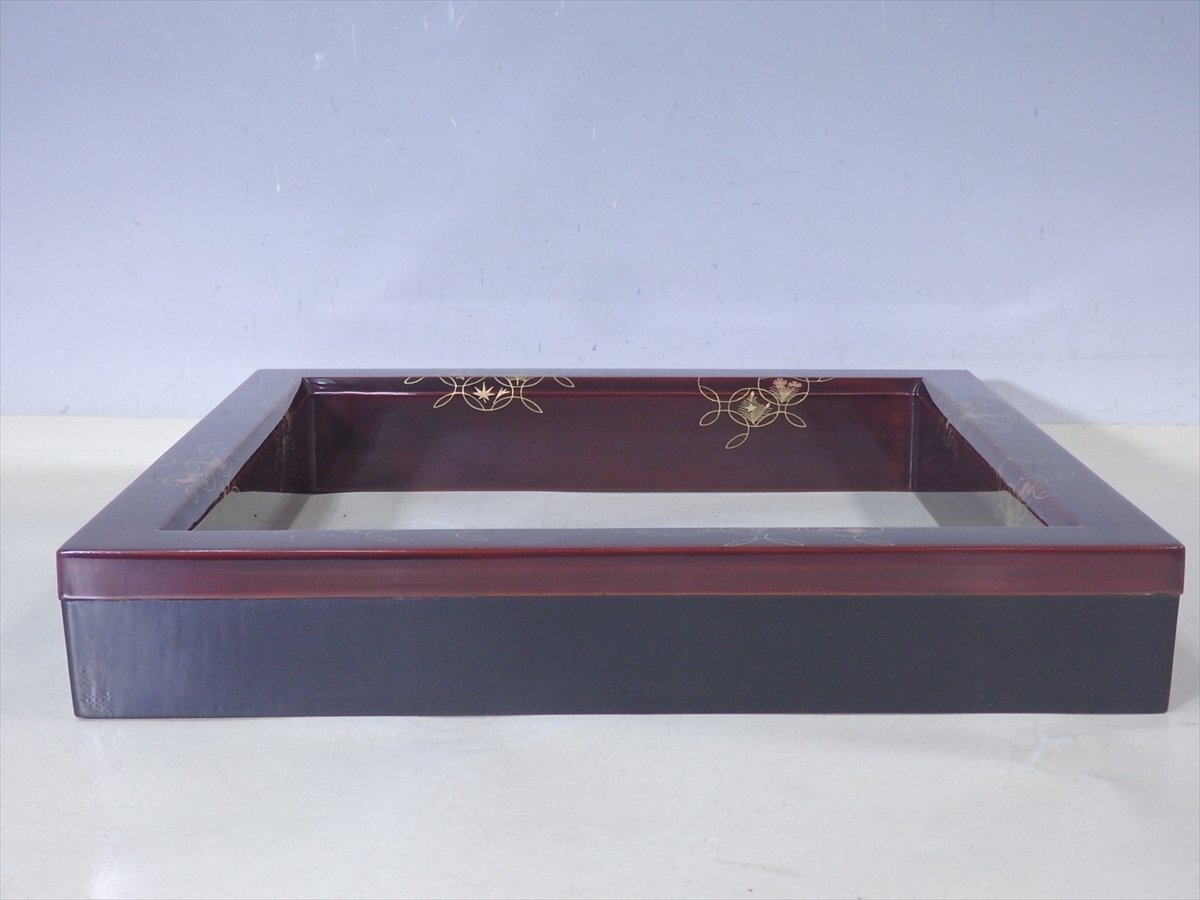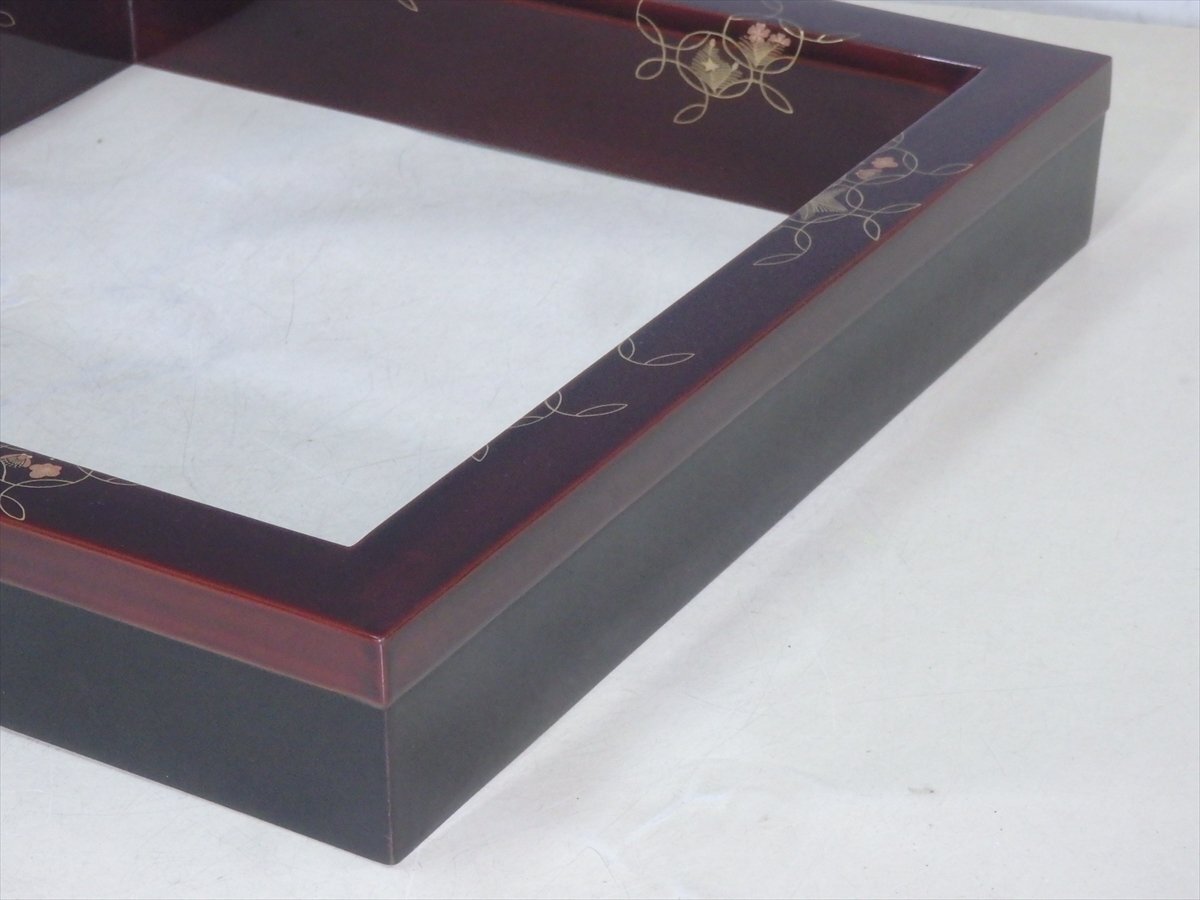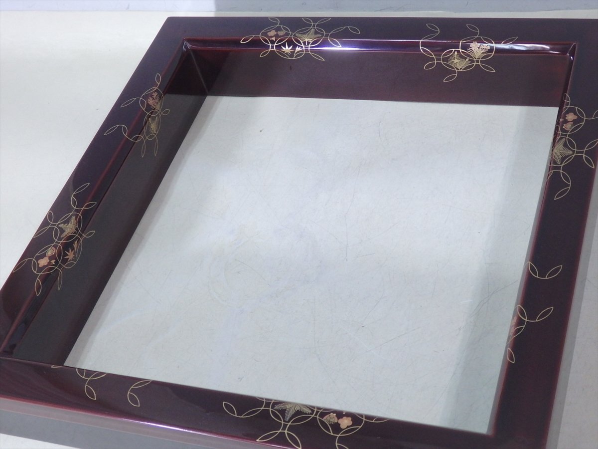 ★美品!花七宝蒔絵【輪島塗 溜塗 炉縁 共箱】木製 サイズ:42.5cm角 高さ6.8cm 茶道具 家具 茶器 漆器 お稽古 茶室に