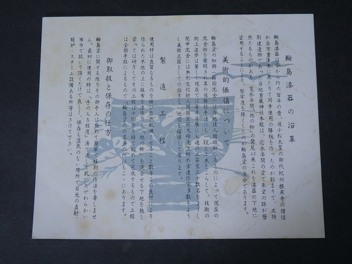 【管理番号5-1202034-12 スタッフコメント:iy】  ☆つややかな溜塗りに、花七宝の上品な蒔絵入りです。ほとんどキズはなく状態の良いお品です。 ※木箱の蓋は角に割れがあります。