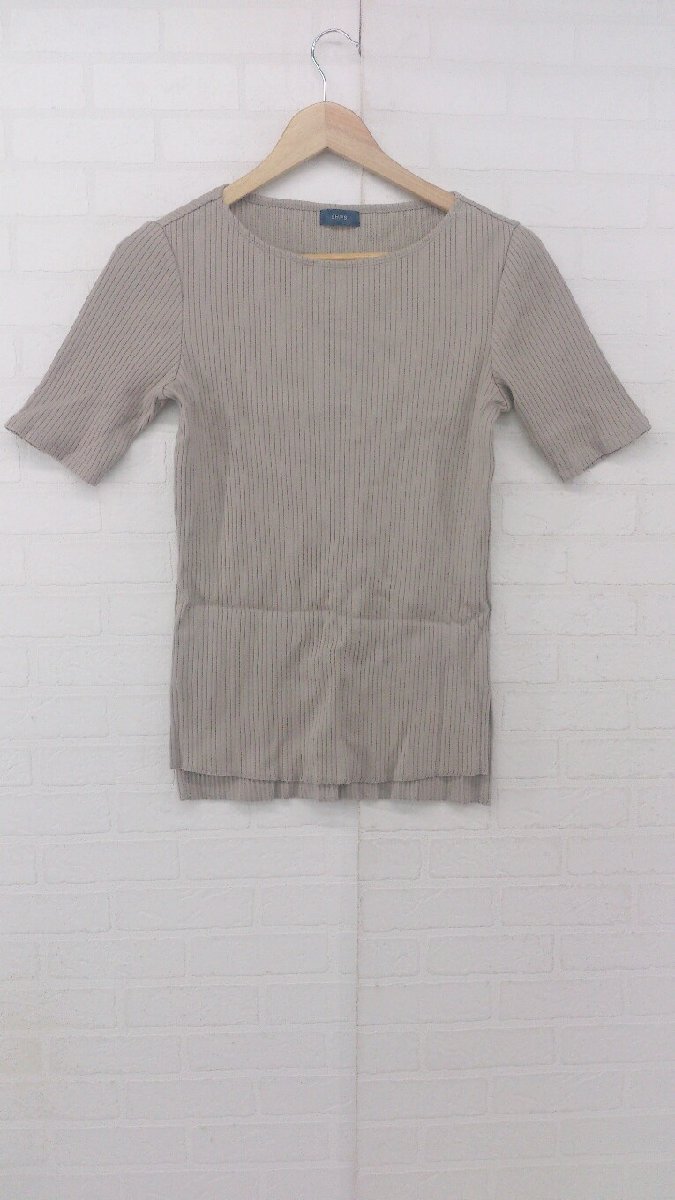 ◇ SHIPS シップス シンプル サイドスリット 半袖 リブニット カットソー ベージュ レディース P