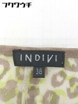 ◇ INDIVI インディヴィ アニマル柄 半袖 ミニ ワンピース サイズ38 ホワイト グリーン ブラウン系 レディース