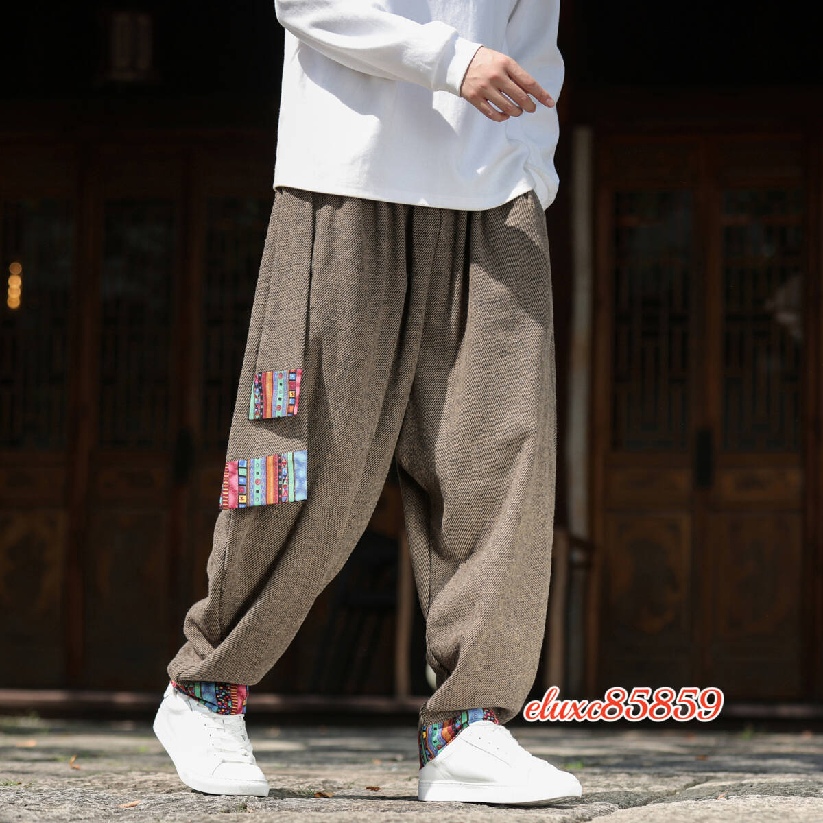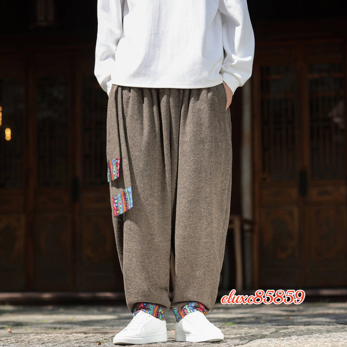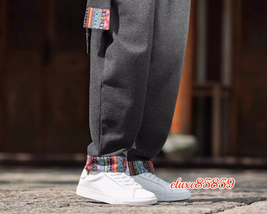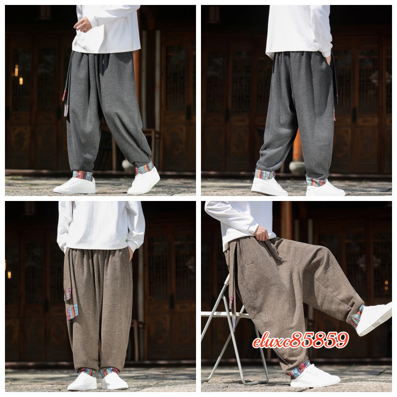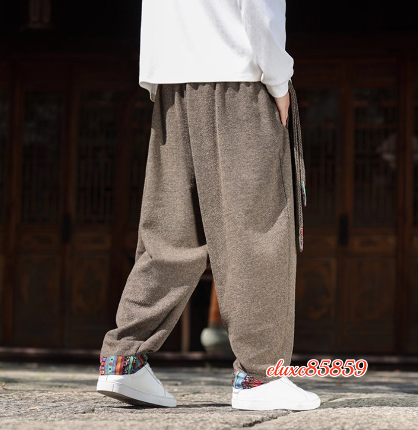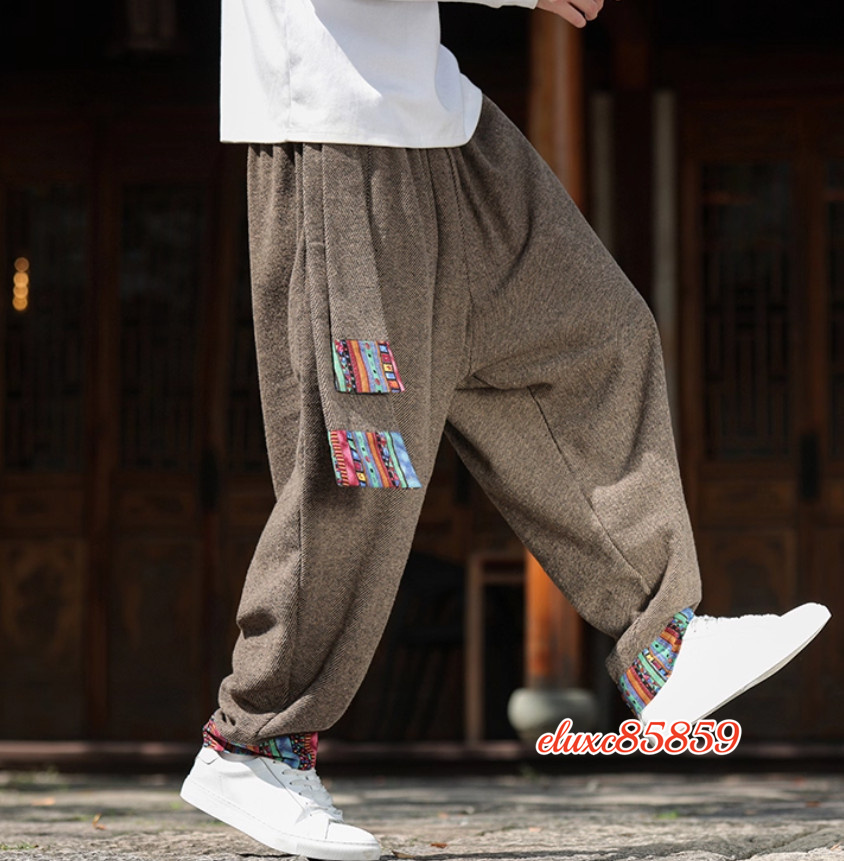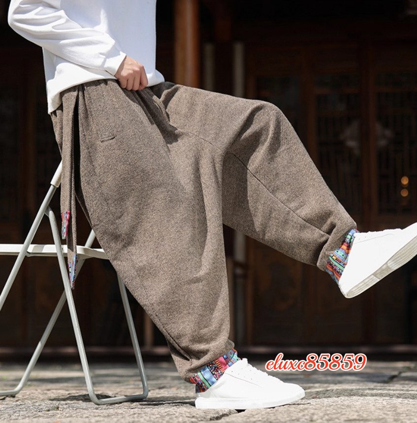 秋冬 ワイドパンツ メンズ レースアップ 防寒 加厚 ズボン ダンス ゆったり ボトムス サルエルパンツ サイズ選択可M 珈琲色