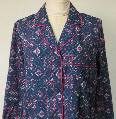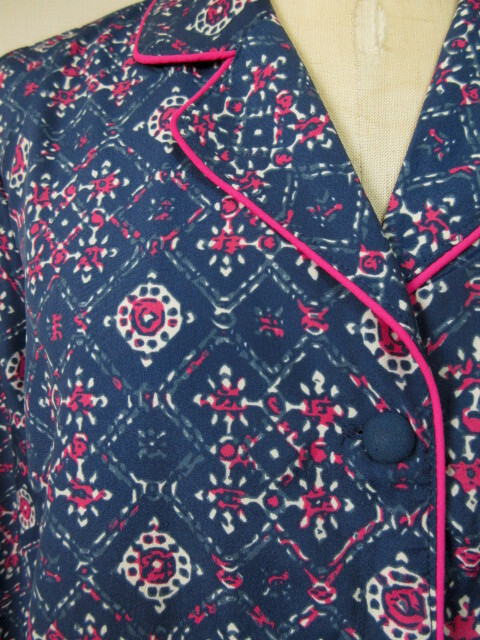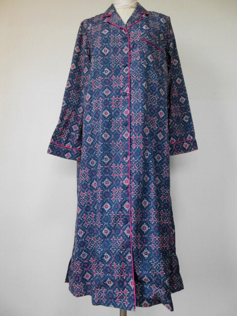 古着♪レトロ調・紺ピンクロングシャツワンピ♪70s60s70年代60年代80年代ヴィンテージアンティーク調ゆったり長袖即決まとめ