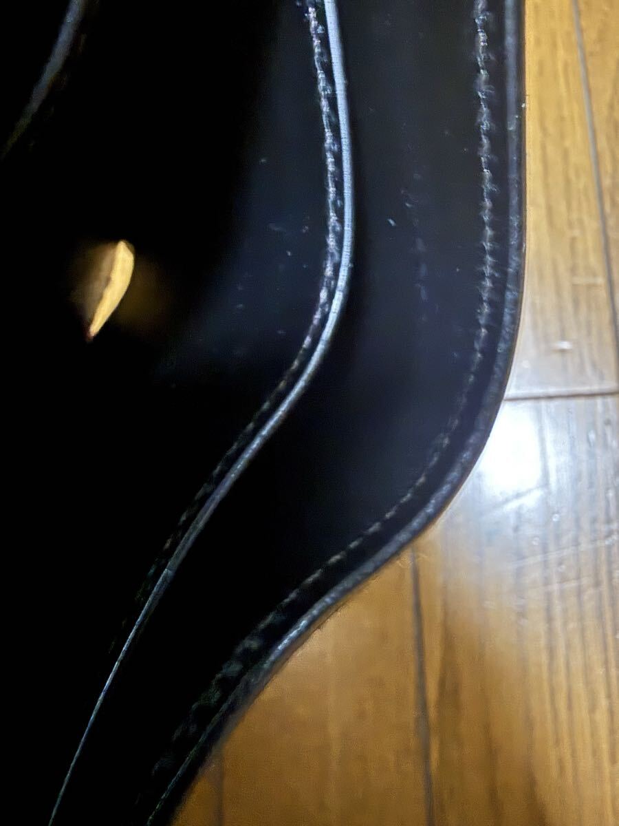 ・油分が多い皮革のため、コバ(製品の縁)に革の重なりが線のように現れるケースがあります。また、ご使用頂くことで線がより顕著に現れる可能性があるため、コバ部分を過度に変形させないようご注意ください。