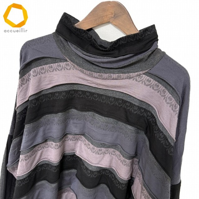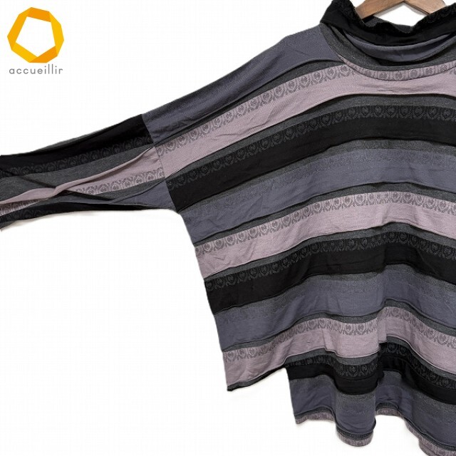 ●商品名(タイトル):#anc イークラット E-clat カットソー 42 グレー 紫系 ドルマン ハイネック 変形 レディース [973719]