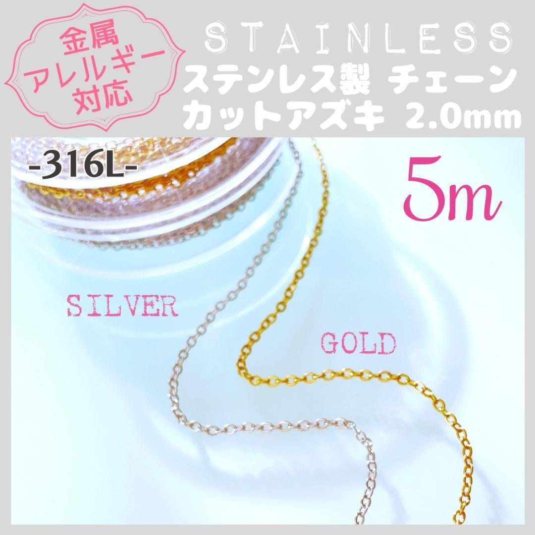 送料無料★akeeeeey★【アレルギー対応】ステンレスチェーン カットアズキ 2.0mm 1M_F6|ステンレスネックレス つけっぱなしOK