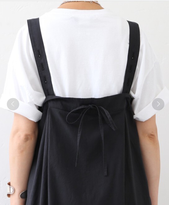 肩紐の後のボタンホールで着丈を、背中の共紐でもバストサイズが調節していただける、ロング丈のベアトップワンピース。
