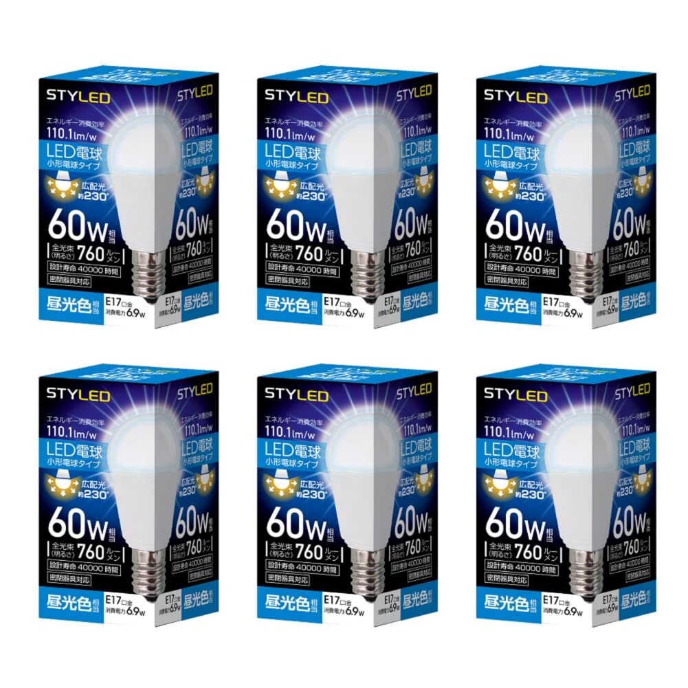 スタイルド LED電球 6個セット E17 昼光色 60W形相当 ミニクリプトン形 広配光タイプ 密閉器具対応 HA6T17DS6