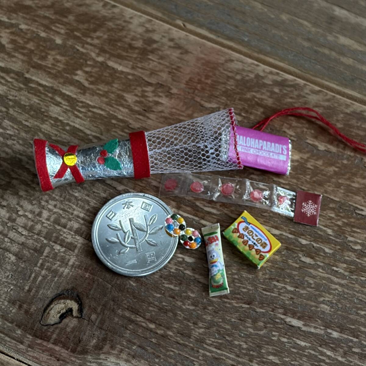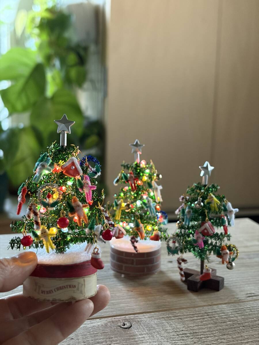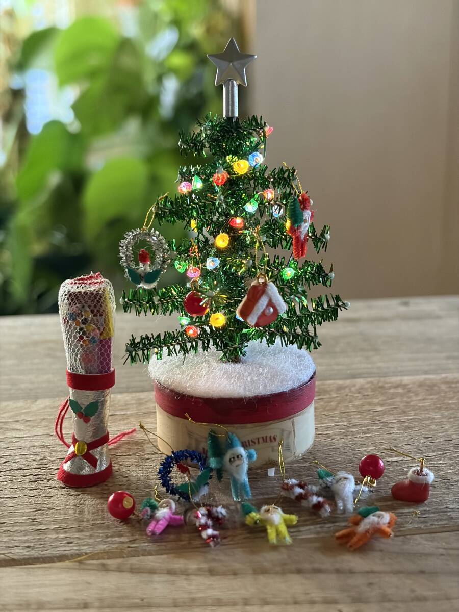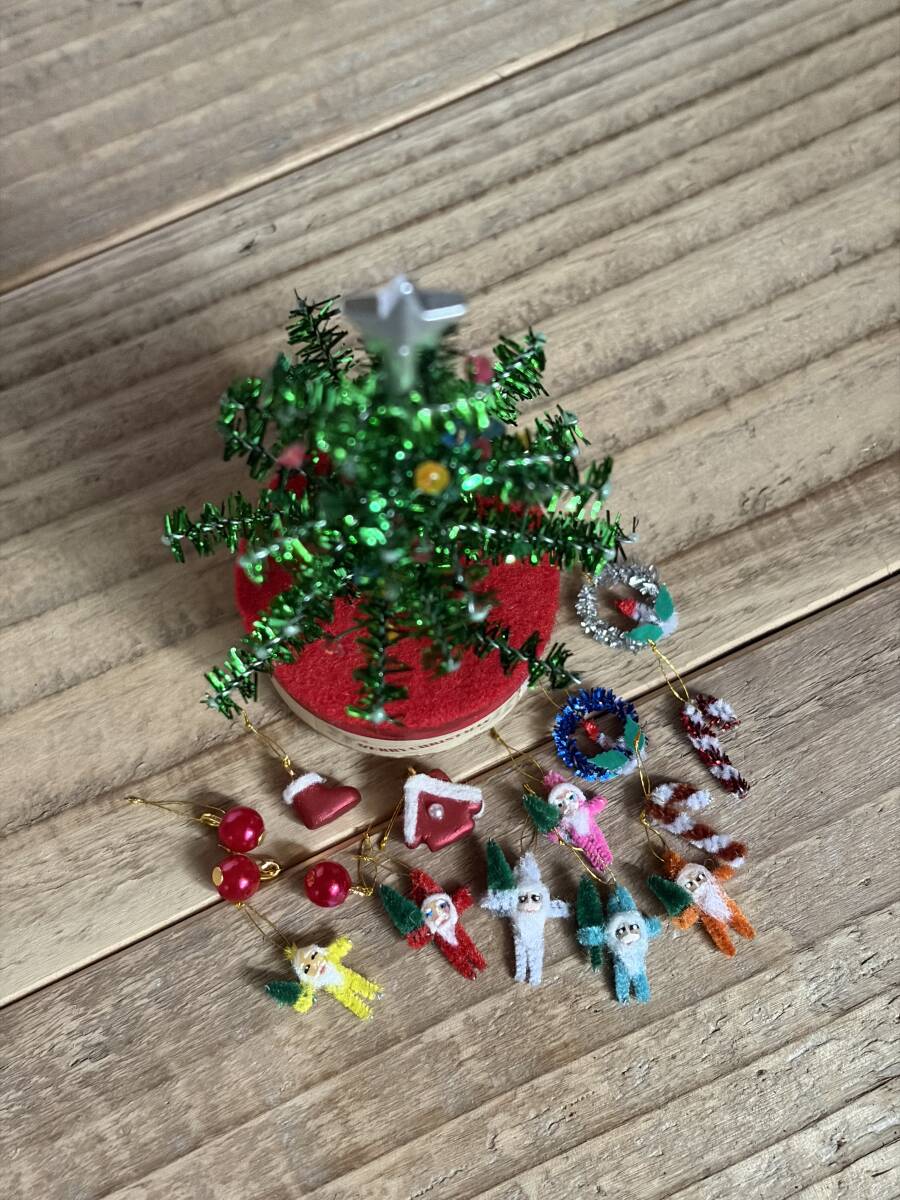 レトロ感のあるミニチュアクリスマスツリー&菓子入りサンタブーツを作りました