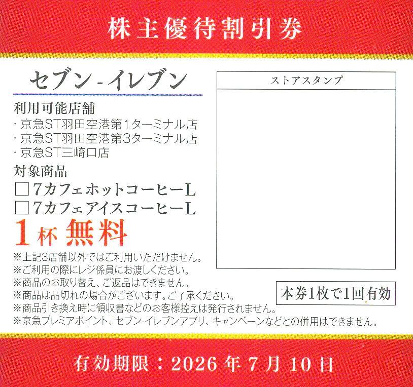セブンイレブンのコーヒー 1杯分が無料になるお得な優待券です。