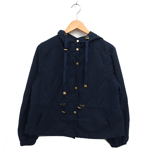 アクシーズファム axes femme パーカー ジャンパー レース ドローストリング ワイド スナップボタン M 紺 ネイビー /NT24 レディース