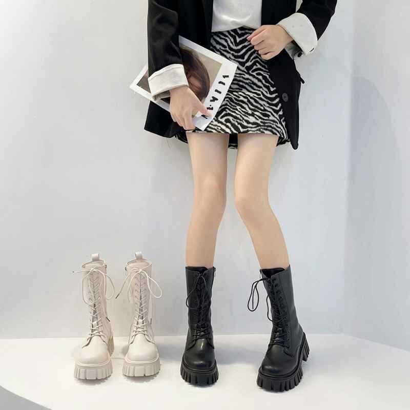 レースアップミドルブーツ ストームブーツ 22.5cm(35) アイボリー