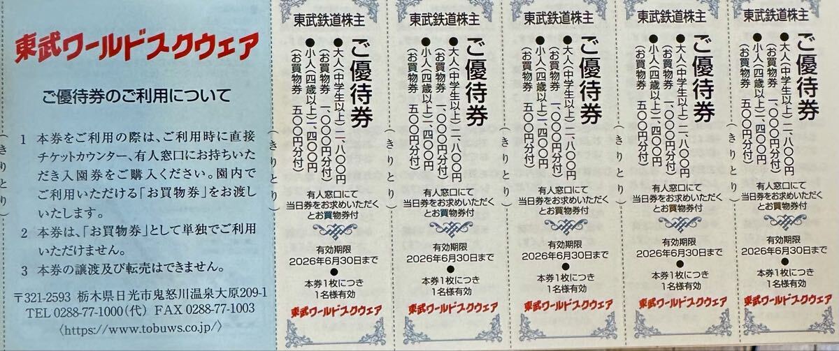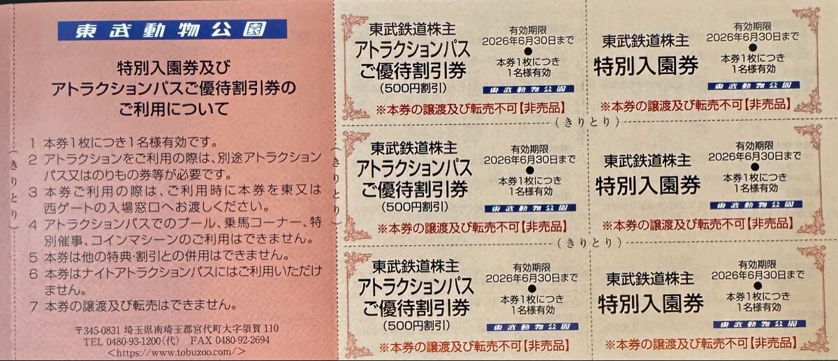 【★送料込★即決】東武鉄道株主優待冊子★東武動物公園入園券3枚・東武ホテル割引券5枚・東武博物館入館券5枚他色々★期限2026年6月30日