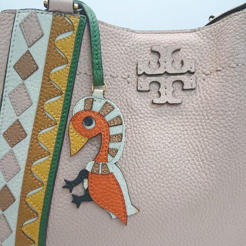 ◇ TORY BURCH ロゴ レザー 鳥 チャーム おしゃれ 大人 大容量 トートバッグ ピンク レディース E