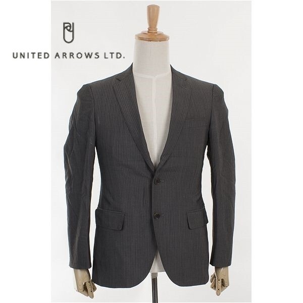 A4280/秋冬 総裏 UNITED ARROWS green label relaxing ウール シルク ストライプ テーラード シングル2Bジャケット 44灰色/メンズ スーツ用
