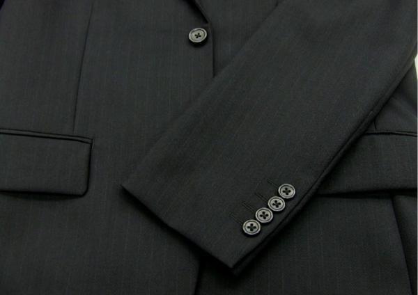 シーズン:秋冬春 サイズ:AB3(胸回92・腰回82・身長160) 上着デザイン:シングル2釦スリーピース 裏仕様:総裏仕立て スラックス:ノータッグ(膝当て付き) 色柄:ネービー系縦縞 表素材:ウール100% 胴裏:ポリエステル100% 袖裏:ポリエステル100% 縫製:MADE IN CHINA 詳細な寸法 上着:着丈67.5・肩幅45.3・袖丈57.5・身幅54・胴廻り90 スラックス:腰廻り82・股上25.5・渡り巾33.8・膝幅33.8・裾巾21.25 上記記載の数字は何れもcmになります。 【補正希望の方】裾上げ800円になりますので落札した後ご連絡ください。 | ||||