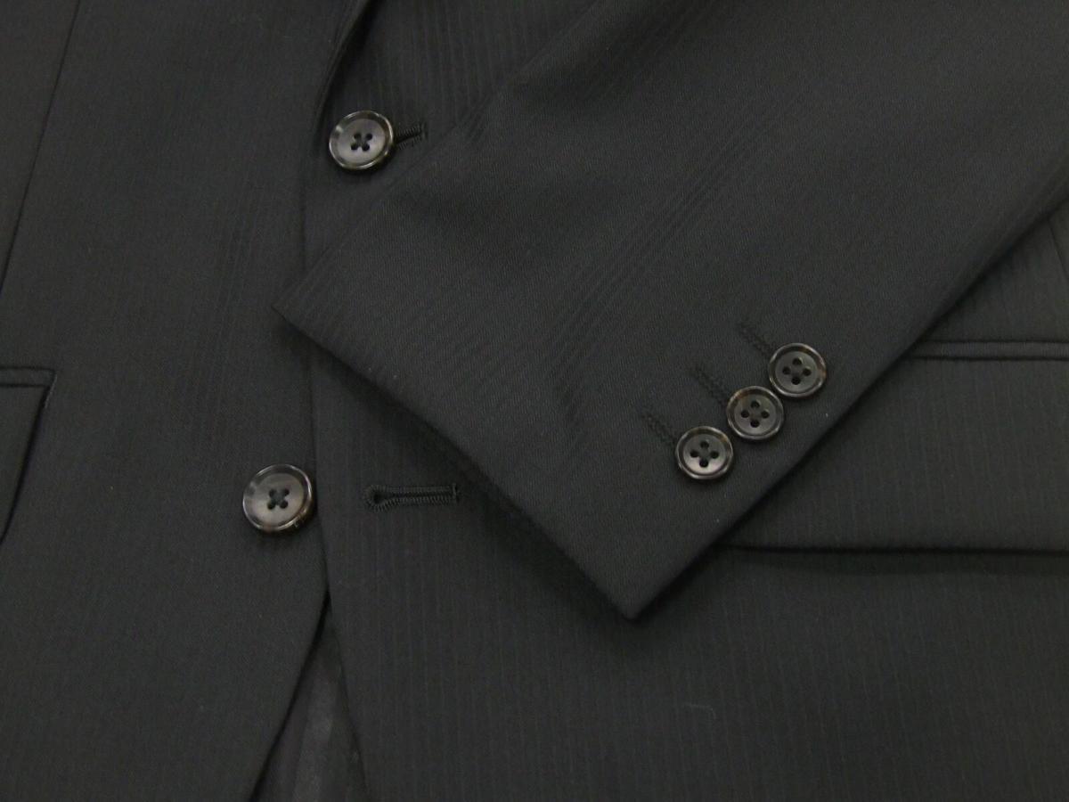シワの原因の1つである水分の繊維への浸透を防止し、強い反発力や収縮性をもった素材を採用しています。 全体のシルエットはスタイリッシュな細身体になります。 シーズン:秋冬 サイズ:A6(胸回94・腰回82・身長175) 上着デザイン:2釦シングル ベンツ:センターベンツ 裏仕様:総裏 パンツ:ノータッグ 色:無地に近いチャコールグレ 柄:ドビー柄 素材:表素材 毛50/ポリエステル50 裏地:ポリエステル60/複合繊維40 胴裏:キュプラー100% 袖裏:キュプラー100% 縫製:バングラディシュ 詳細な寸法 A6(胸回94・腰回82・身長175) 上 着:胸囲108・胴廻り93・着丈72・肩幅45.1・袖丈61.5 パ ン ツ :ウエスト82・股上24.5・股下91・渡り幅34.5・膝幅22.3・裾幅19.3 上記記載の数字は何れもcmになります。 | ||||