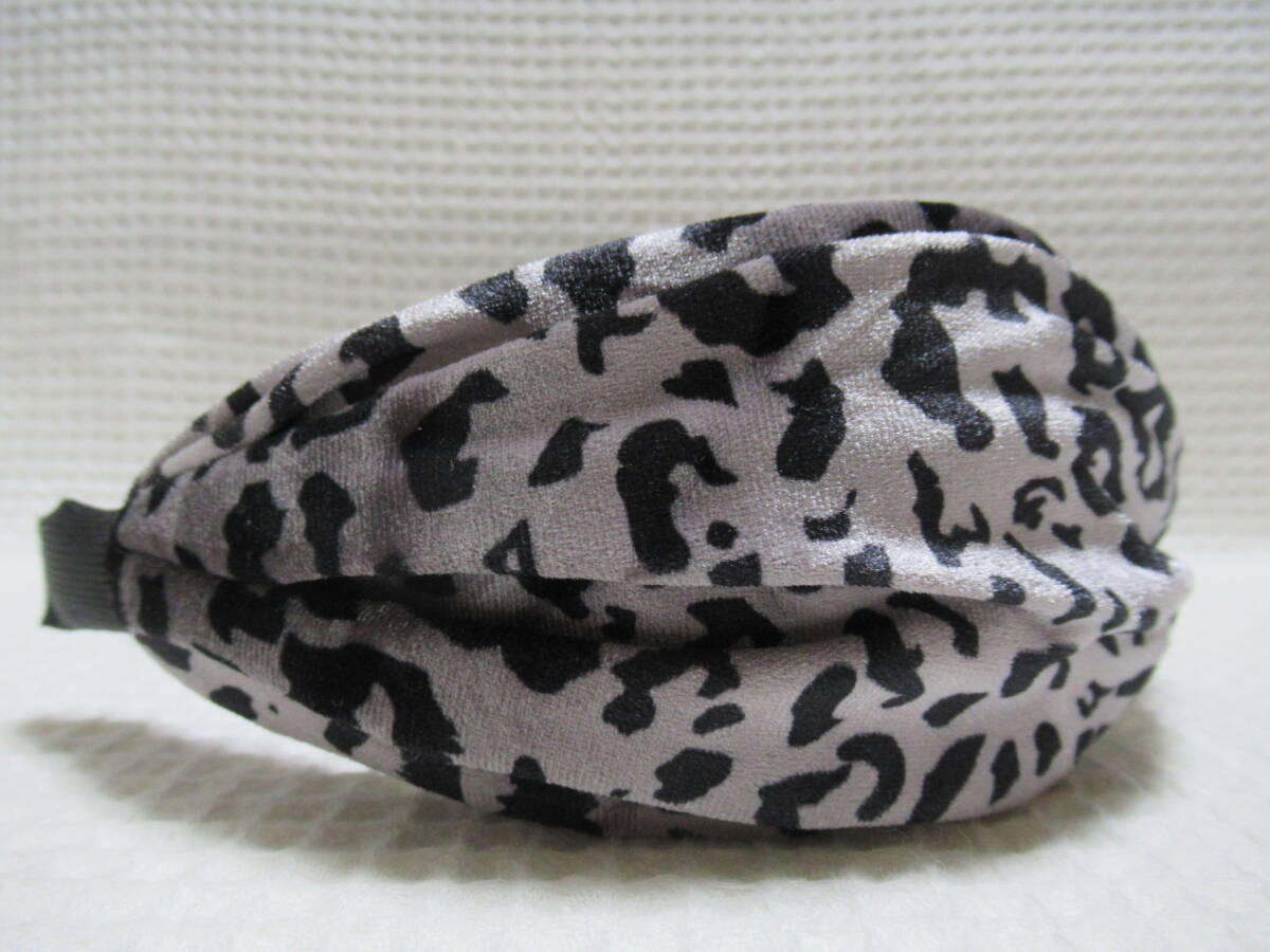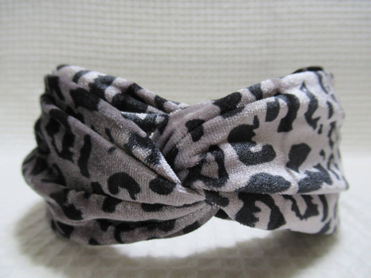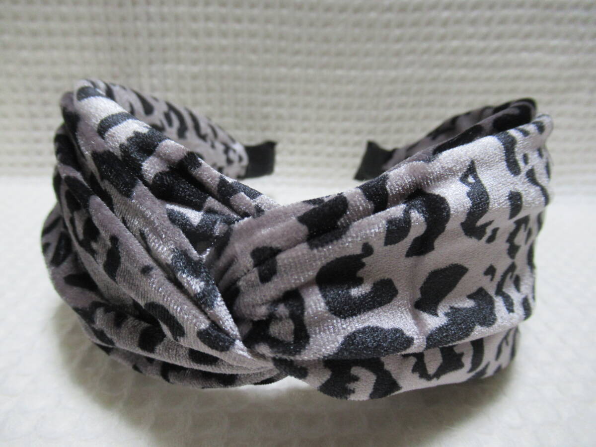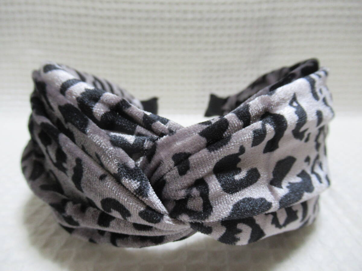 アニマル柄入りベロア生地のクロス型カチューシャ グレー系