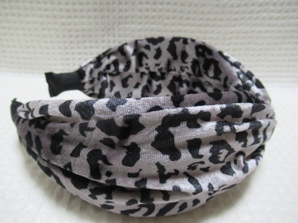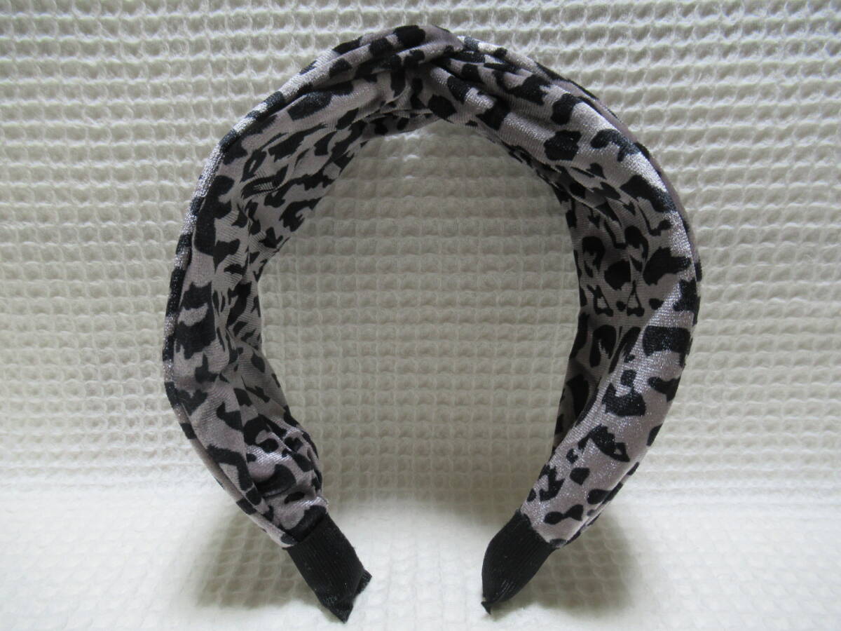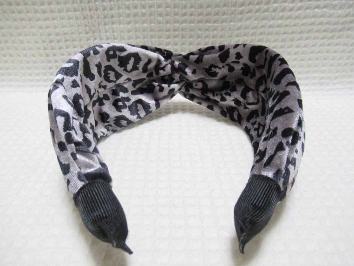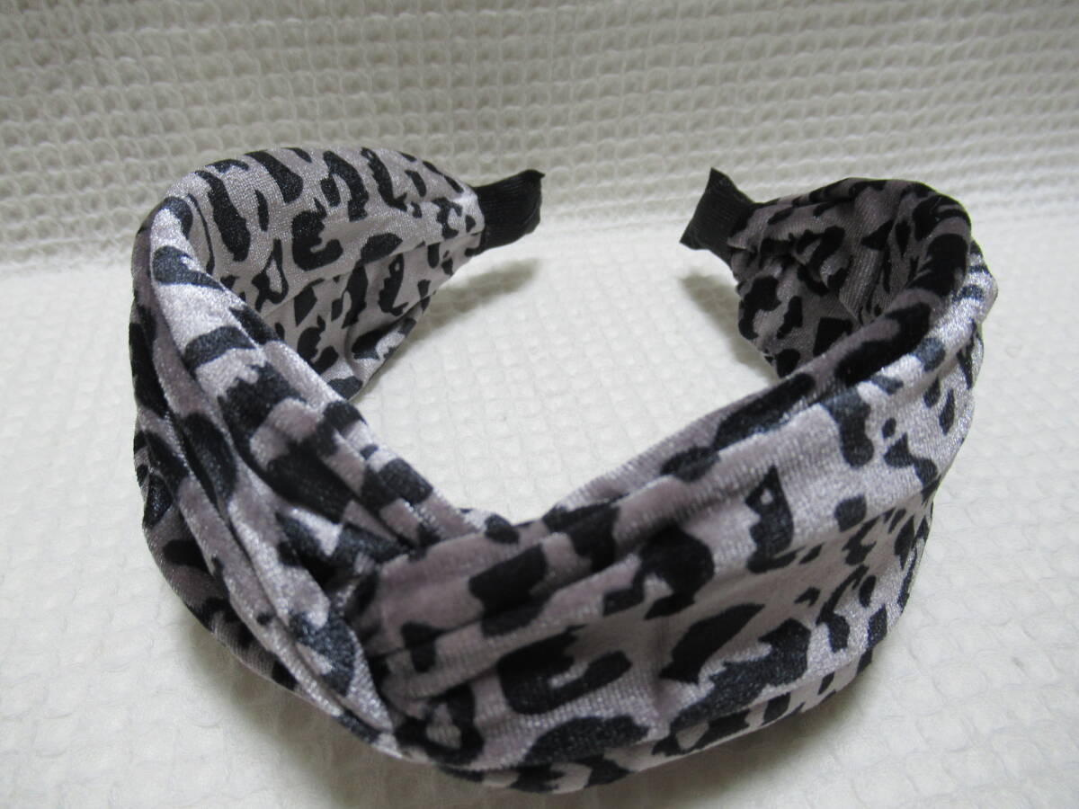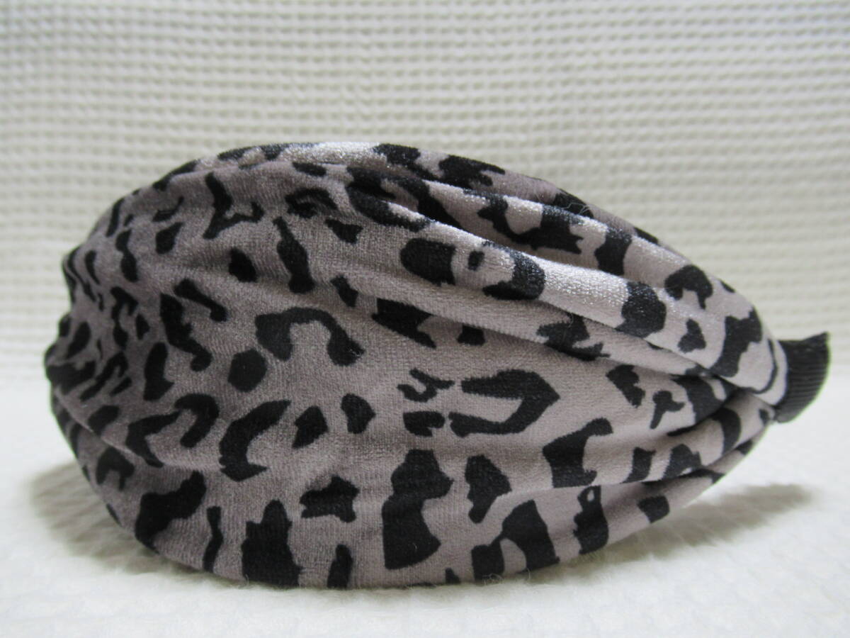 アニマル柄入りベロア生地のクロス型カチューシャ グレー系