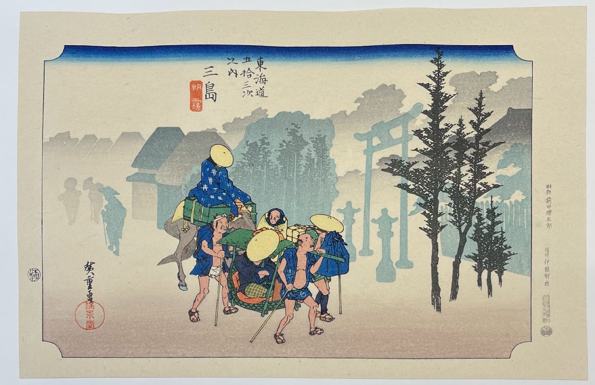 【真作】歌川広重「東海道五十三次 三島-12」木版 保永堂版 浮世絵 錦絵【広重不朽の名作 日本が世界に誇る木版画 woodblock print】