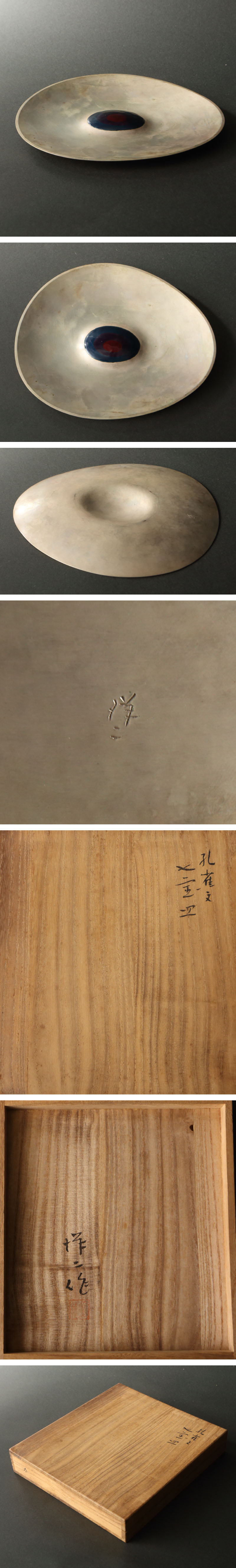 委託HK◇山脇洋二 孔雀文七宝皿 共箱(近代工芸 金工作家 京焼 菓子皿 料理 飾皿 懐石具 食器 和食器 日展理事 七宝家)