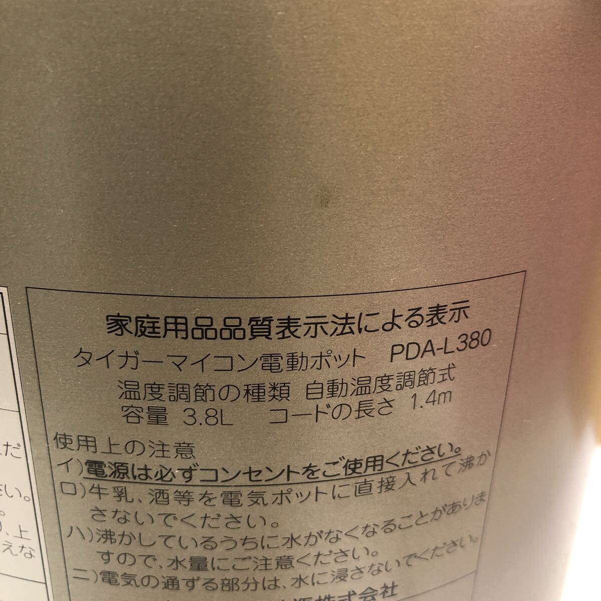 TK5819 TIGER タイガーマイコン電動ポット PDA-L380 動作確認濟 1203