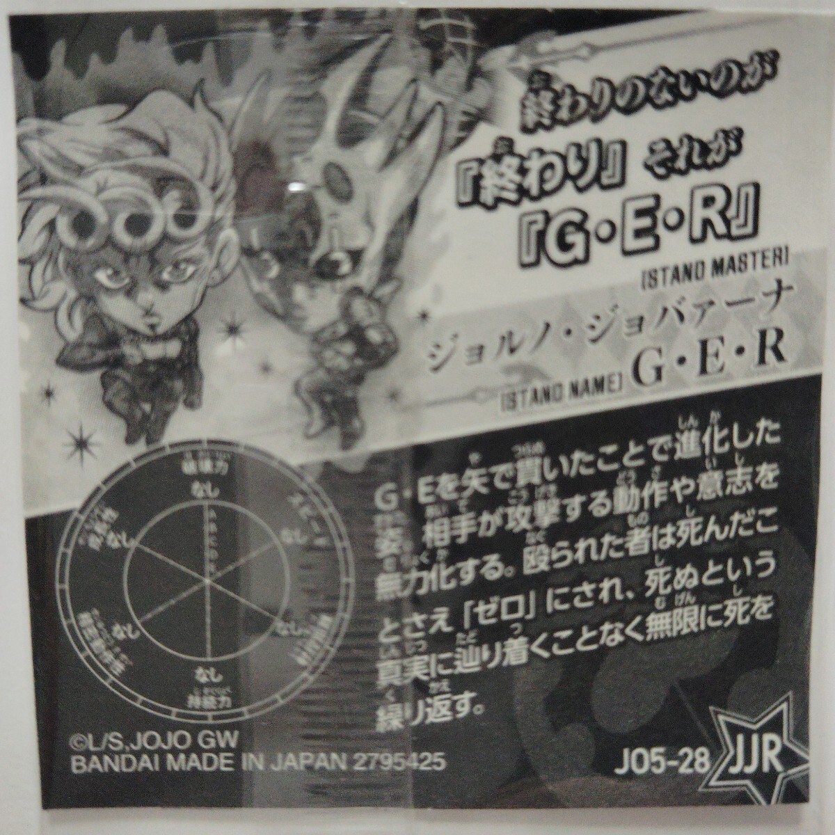 にふぉるめーしょん ジョジョの奇妙な冒険 JOJO シール ウエハース バンダイJO5-28 JJR ジョルノ・ジョバーナ