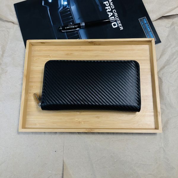 艶感のある美しいカーボンレザーロングウォレット。