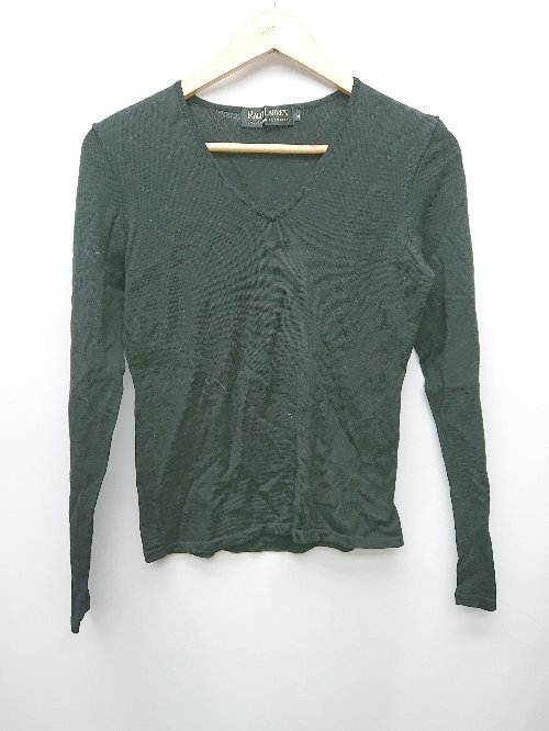 ◇ RALPH LAUREN ラルフローレン シンプル 薄手 Vネック 長袖 ニット カットソー サイズM 165/92A ブラック レディース P