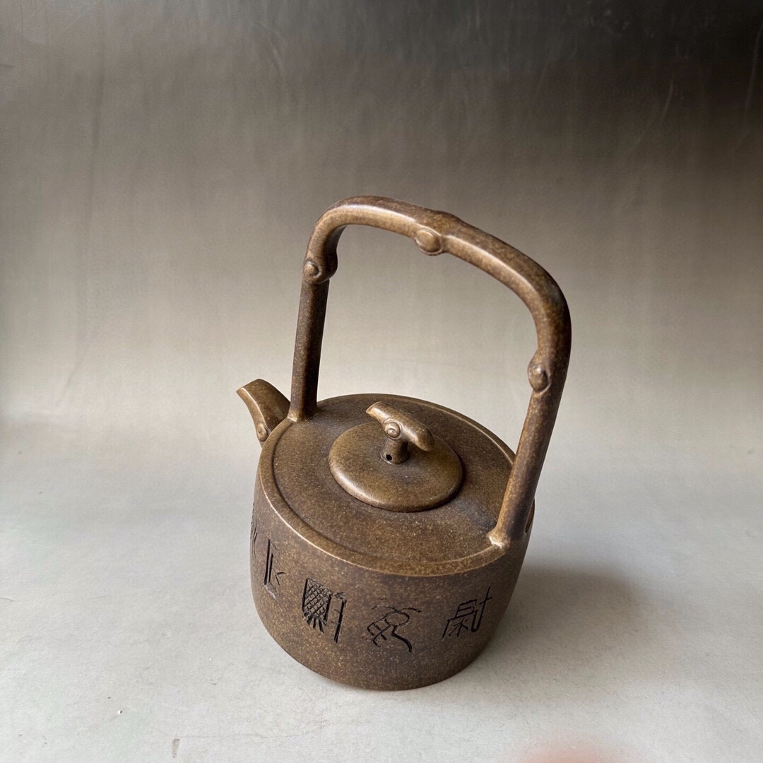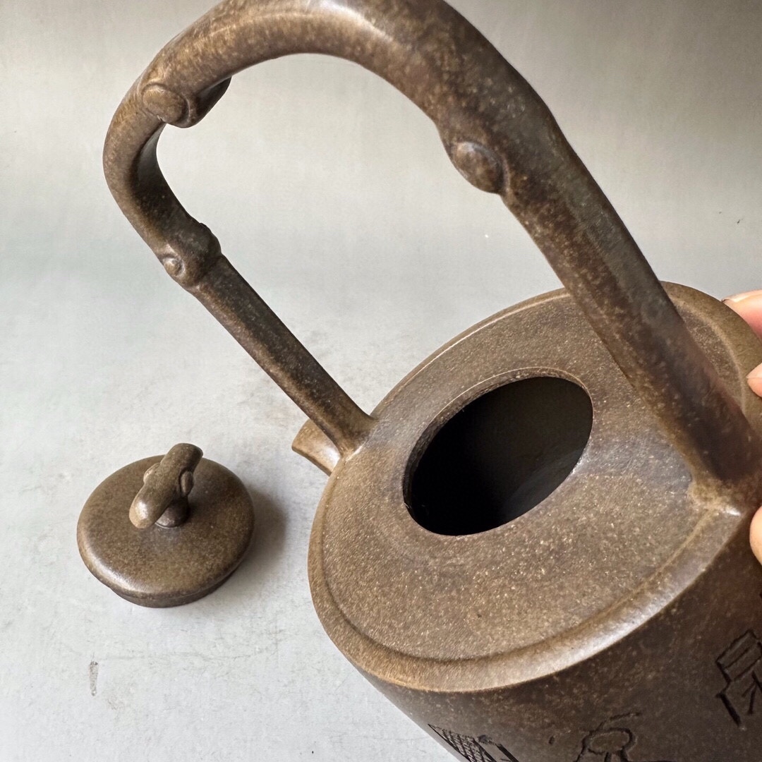 館蔵 宜興紫砂壺 如意提梁壺 茶壺 酒壺 急須 常滑 茶道具 煎茶道具 中国古美術 古美味 蔵出