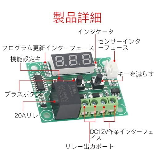 サーモスタット XH-W1209 温度熱センサスイッチ 温度制御 -50~110°C デジタルサーモスタット DC 12V ±0.1℃高精度加熱冷却制御スイッチ (2個セット)