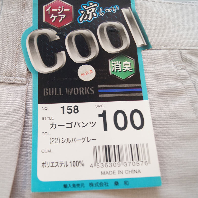 yc88-未使用 BULL WORKS カーゴパンツ 100 シルバーグレー 桑和 SOWA ワークウエアー 作業服 作業着 仕事着