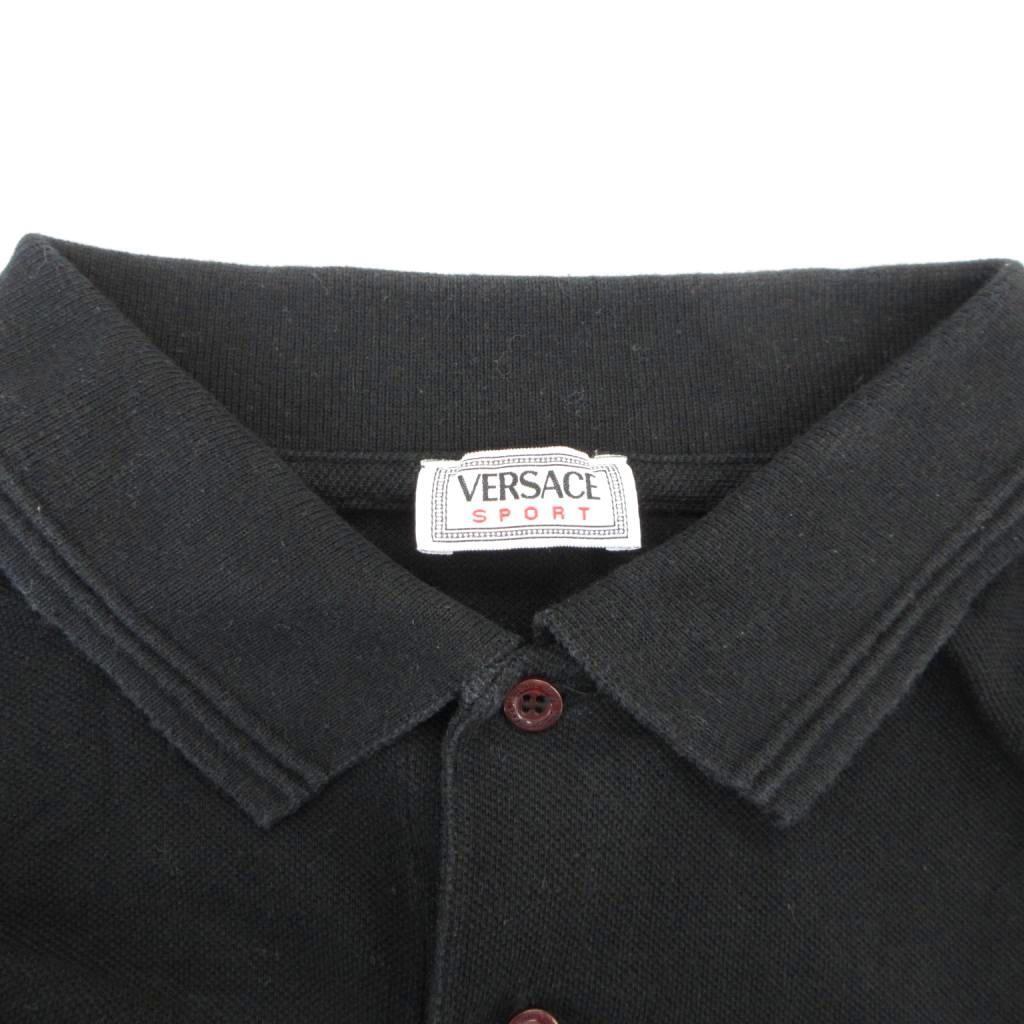 ヴェルサーチ ヴェルサーチェ VERSACE 美品 ポロシャツ 無地 ロゴ刺繍 長袖 50 黒 ブラック /YJ メンズ