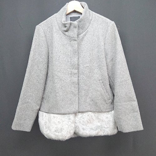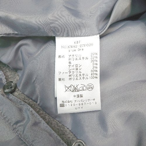 ◇ kbf ケービーエフ ファー取り外し可能 ショート ガーリー カジュアル 長袖 コート サイズONE グレー レディース E