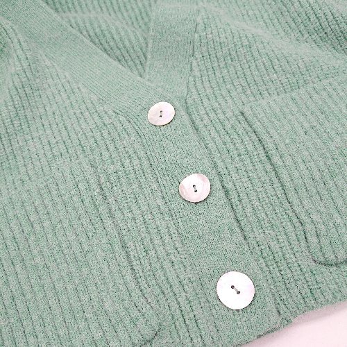 ◇ ⊇ cheek チーク 長袖 カーディガン サイズF グリーン レディース E