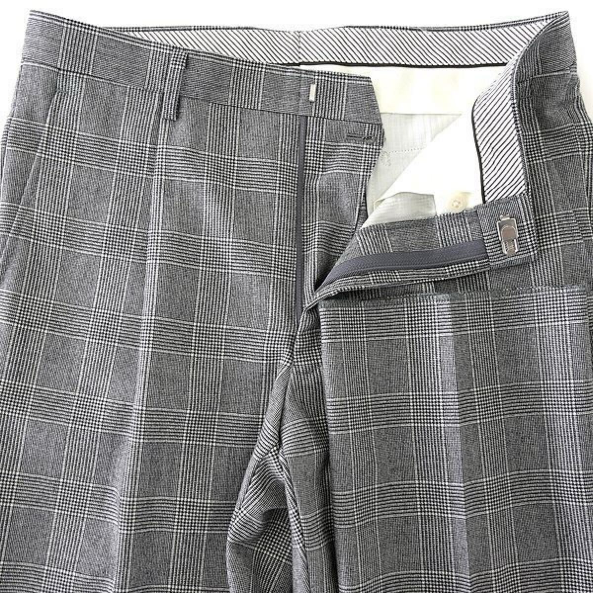 スラックスの前カンはバネ式スライド構造になっており、快適なウエストフィットを実現させています。