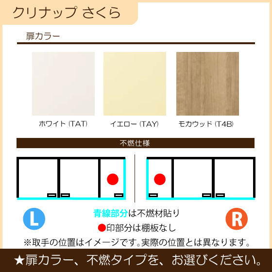■ 扉カラーは、ホワイト(TAT)、イエロー(TAY)、モカウッド(T4B)の3色から選べます。