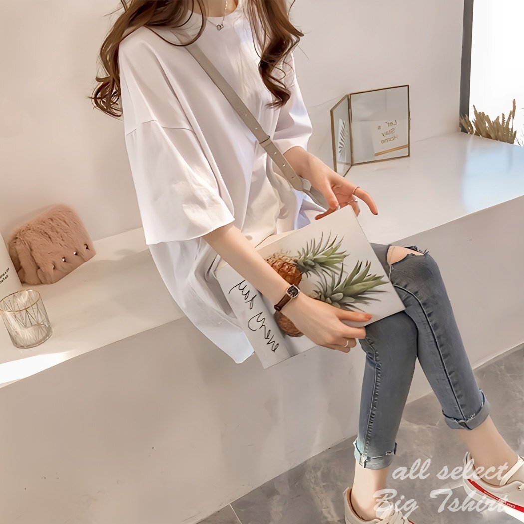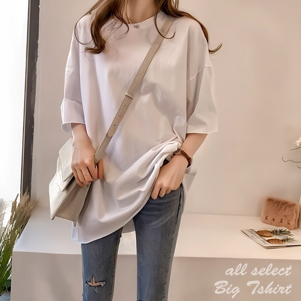 ホワイト XLサイズ ビッグ Tシャツ シンプル 大きめ 無地 着痩せ ゆったり 半袖 トップス 夏 ビッグT tシャツ カットソー 大きいサイズ