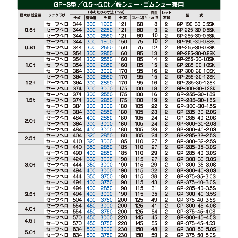| 1,000kg(1t)~ | 1,200kg(1.2t)~ | 1,500kg(1.5t)~ | 2,000kg(2t)~ | 2,500kg(2.5t)~ |