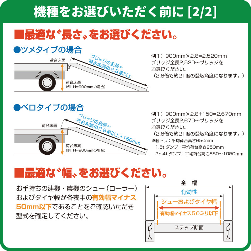 | アルミブリッジ(積載荷重で選ぶ) | ||||