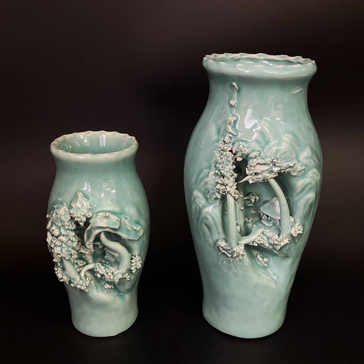 【重要】佐川急便の急激な物量の増加に伴う一部地域の集荷・配送不可について 例年、年末にかけては全国的にお荷物の取扱量が大幅に増加する時期となりますが、 今年はブラックフライデーなどにより、予測を大きく上回る荷物増加となり、 大幅な配送遅延・滞納が生じているとこのとです。 こちらでも最新情報を佐川急便のホームページで確認してまいります。 ご不便をお掛けいたしますが、何卒ご理解のほどよろしくお願い申し上げます。 【状態】 こちらの商品は経年品のため、すり傷・汚れなどございます。 大きい花瓶の彫りの内部に1ヶ所、釉薬剥がれが見られます。 その他状態は画像でご確認の上、現状品としてご理解頂ける方のみご入札下さい。 大:約幅13×奥行12.5×高さ27.5㎝ 小:約幅10×奥行10.7×高さ19.8㎝ ※素人採寸ですので、若干の誤差はご容赦下さい。 ◆この他にも様々なアイテムを多数出品しております。◆ ぜひご覧下さい。 ■トラブルを避けるため、神経質な方や完璧なお品を求められる方は入札をお控え下さい。 | ||