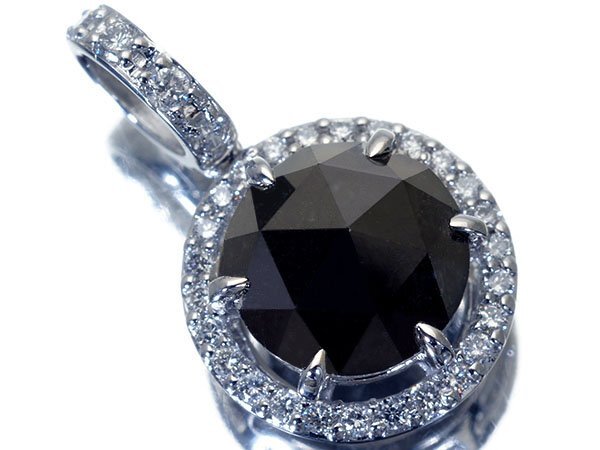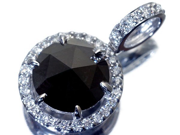 超希少な超大粒上質天然1粒ブラックダイヤモンド4.09ct&良質天然クリアダイヤモンドを素敵に宝飾した、高級K14WGペンダントヘッドを1円から特別大放出致します!