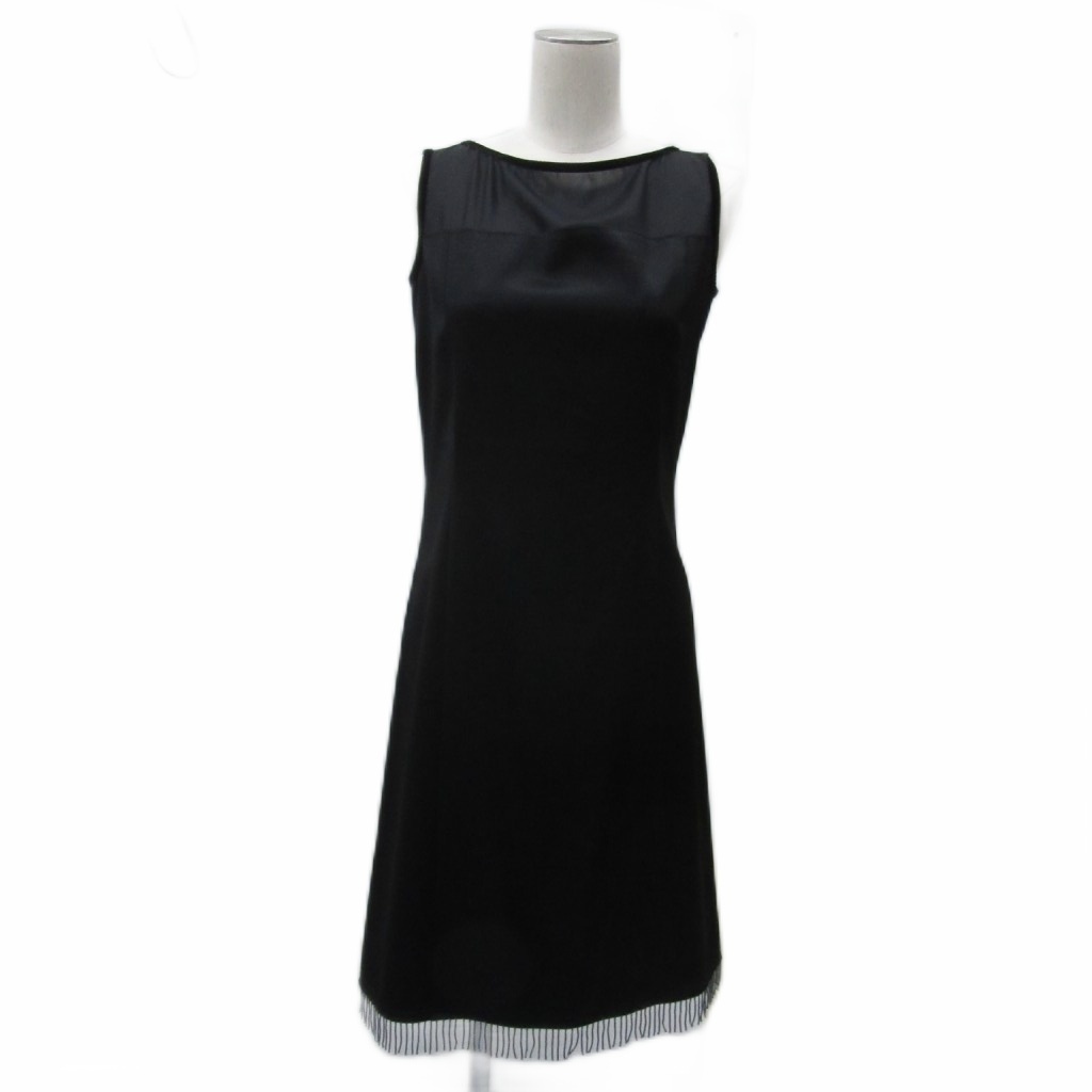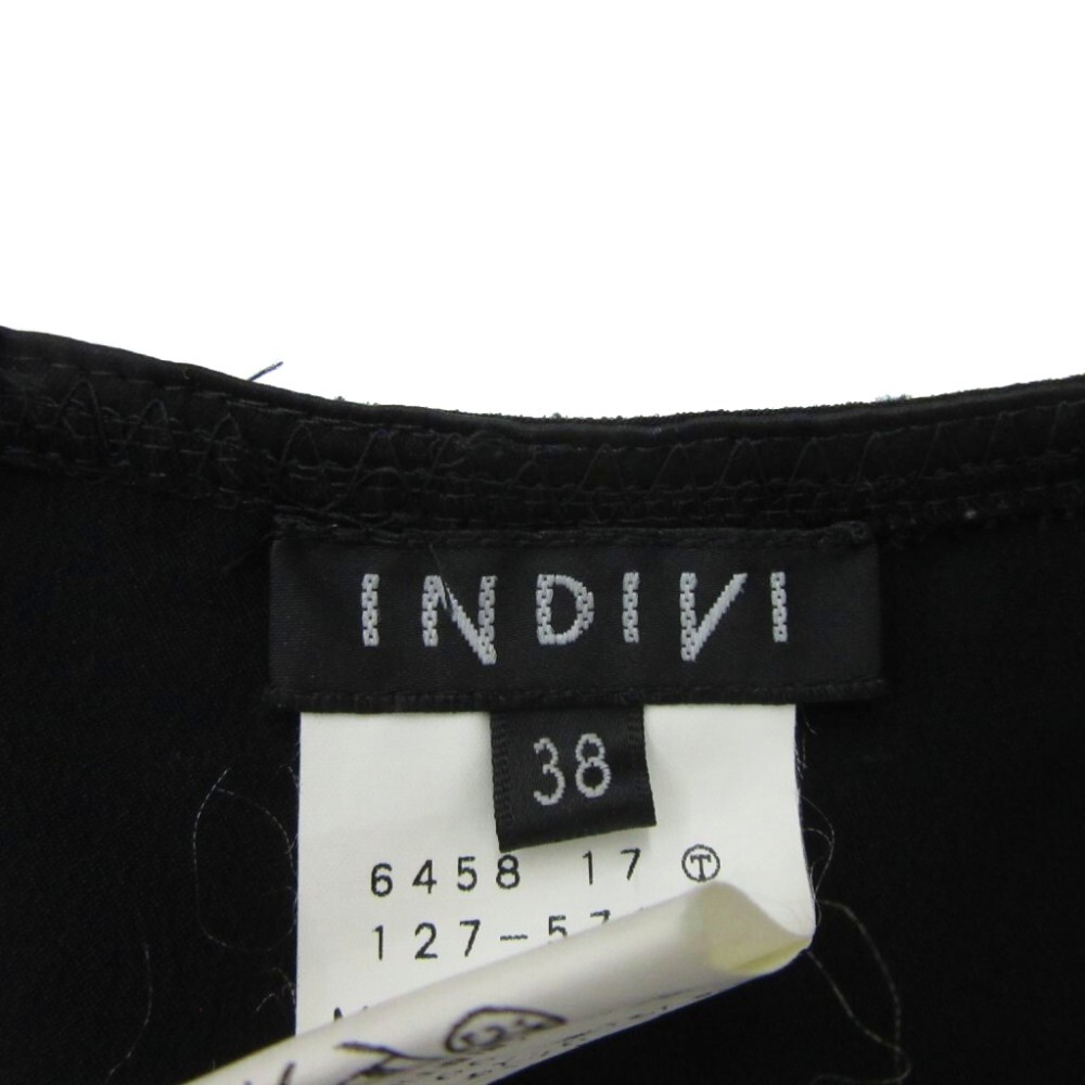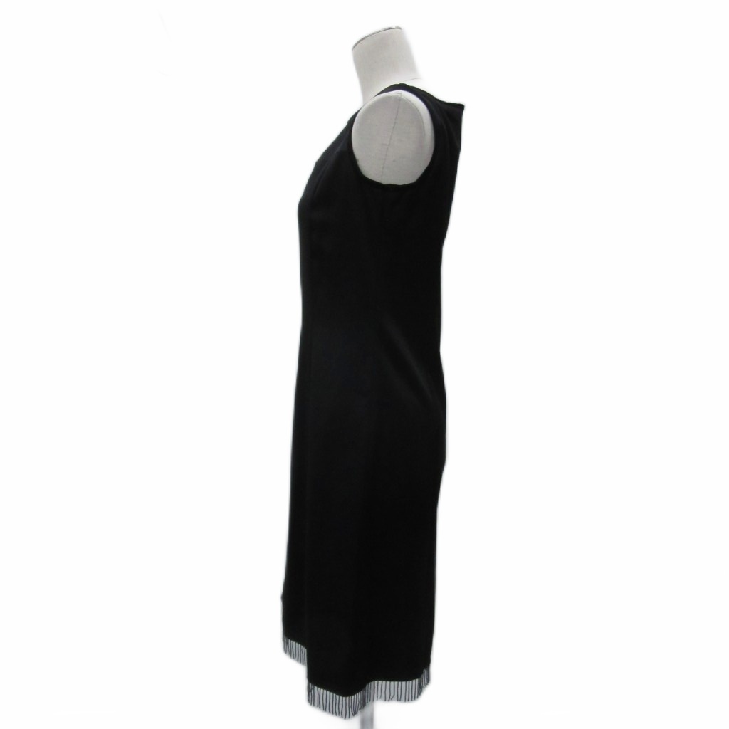 インディヴィ INDIVI ワンピース ひざ丈 38 M 黒 ブラック ノースリーブ ボートネック 裾フリンジ /YS21 ■GY58 レディース