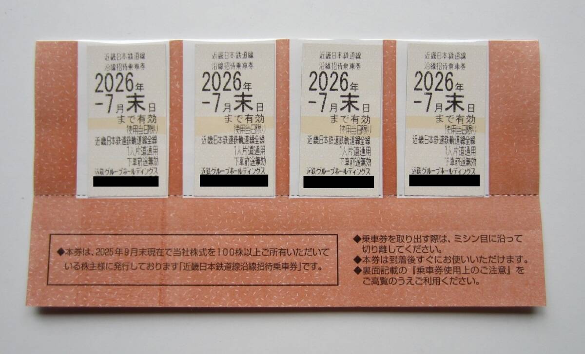 近鉄 近畿日本鉄道沿線招待乗車券 2026年7月末日まで有効 4枚