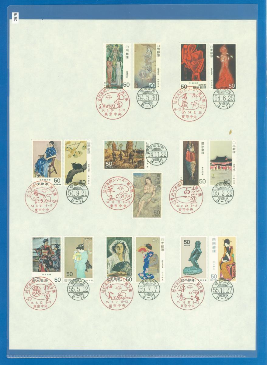 ■2676 FDシート 松屋版カバー用紙使用 美術切手 前半16種 すべて訪局しての貼付と押印の力作 〒4