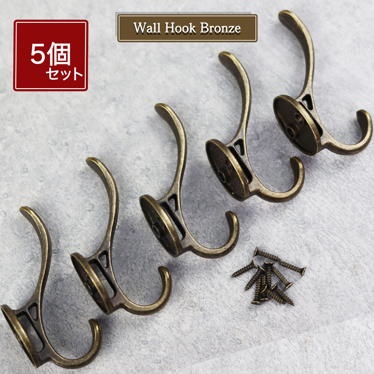 壁掛けフック ハンガー フック アンティーク ひっかけ 5個セット 金具 部品 パーツ DIY 材料 家具 ブロンズ ハンドメイド 送料無料