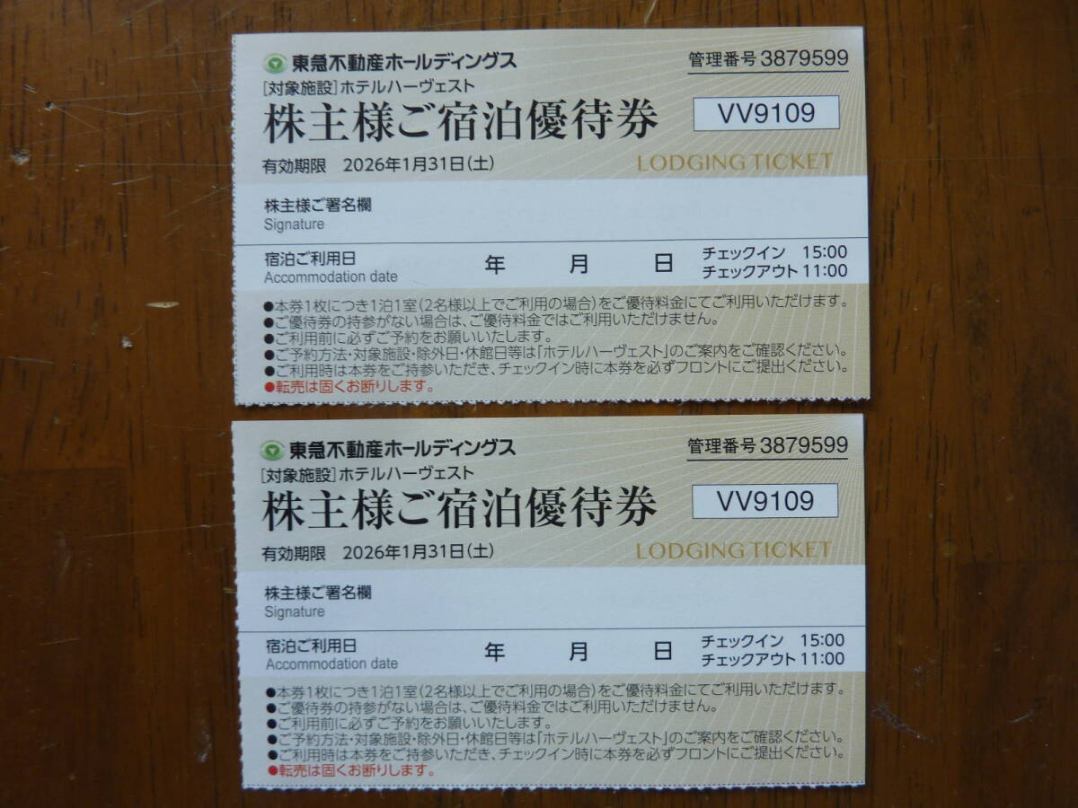 「★送料無料 東急不動産 株主優待宿泊優待券 2枚セット 2026/1/31まで」