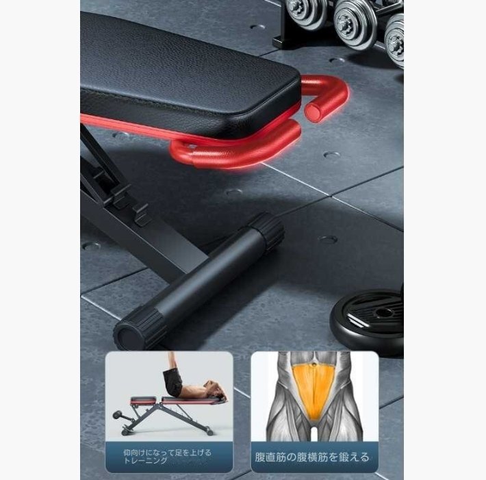 トレーニングベンチ 家庭用/商用 折りたたみ式 インクライン フラットベンチ 角度調整 収納便利 ダンベル 腹 多機能