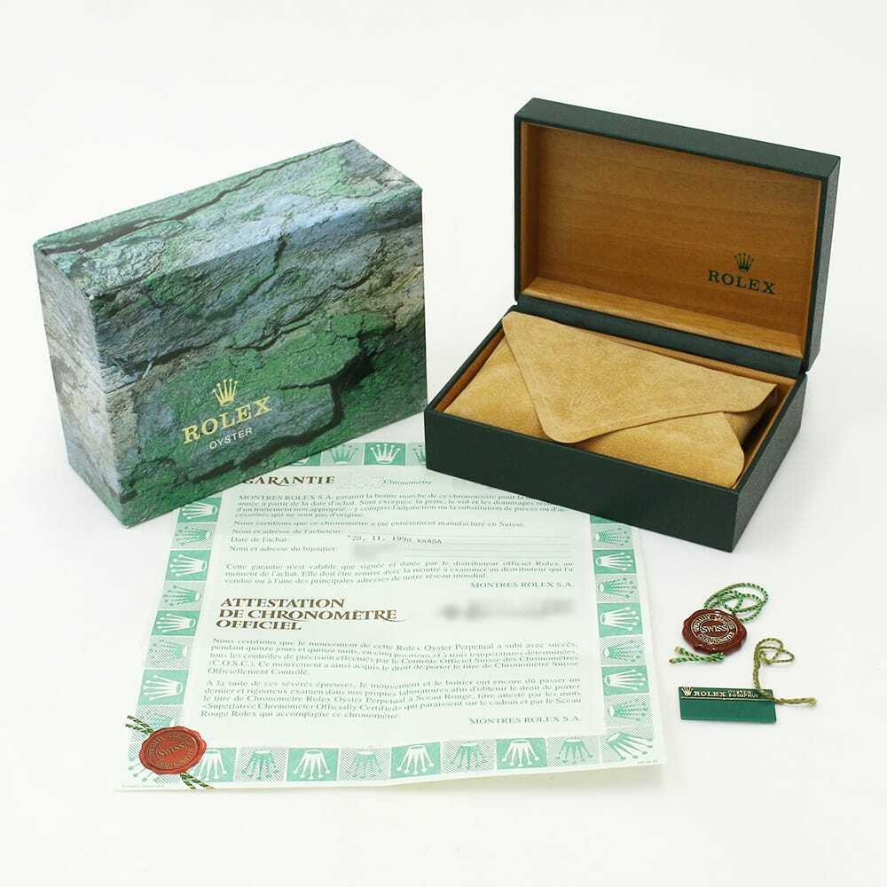 | モデル情報 | 「探検家」と名付けられた"エクスプローラーI"。こちらは、ロングセラー「1016」の後継機として1990年に誕生したモデルです。1016から大幅にダイアルデザインが改良されており、現行エクスプローラーのデザインの礎を築きました。搭載するムーブメントはCal.3000。傑出したロレックスの基幹モデルとして、生産終了して今なお中古市場で高い人気を誇ります。14270のダイアル6時位置の表記は大きく分けて3種類あり【初期(T SWISS-T<25)、中期(SWISS)、後期(SWISS MADE)】となります。 |
