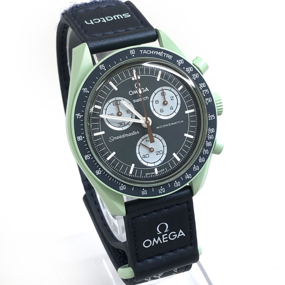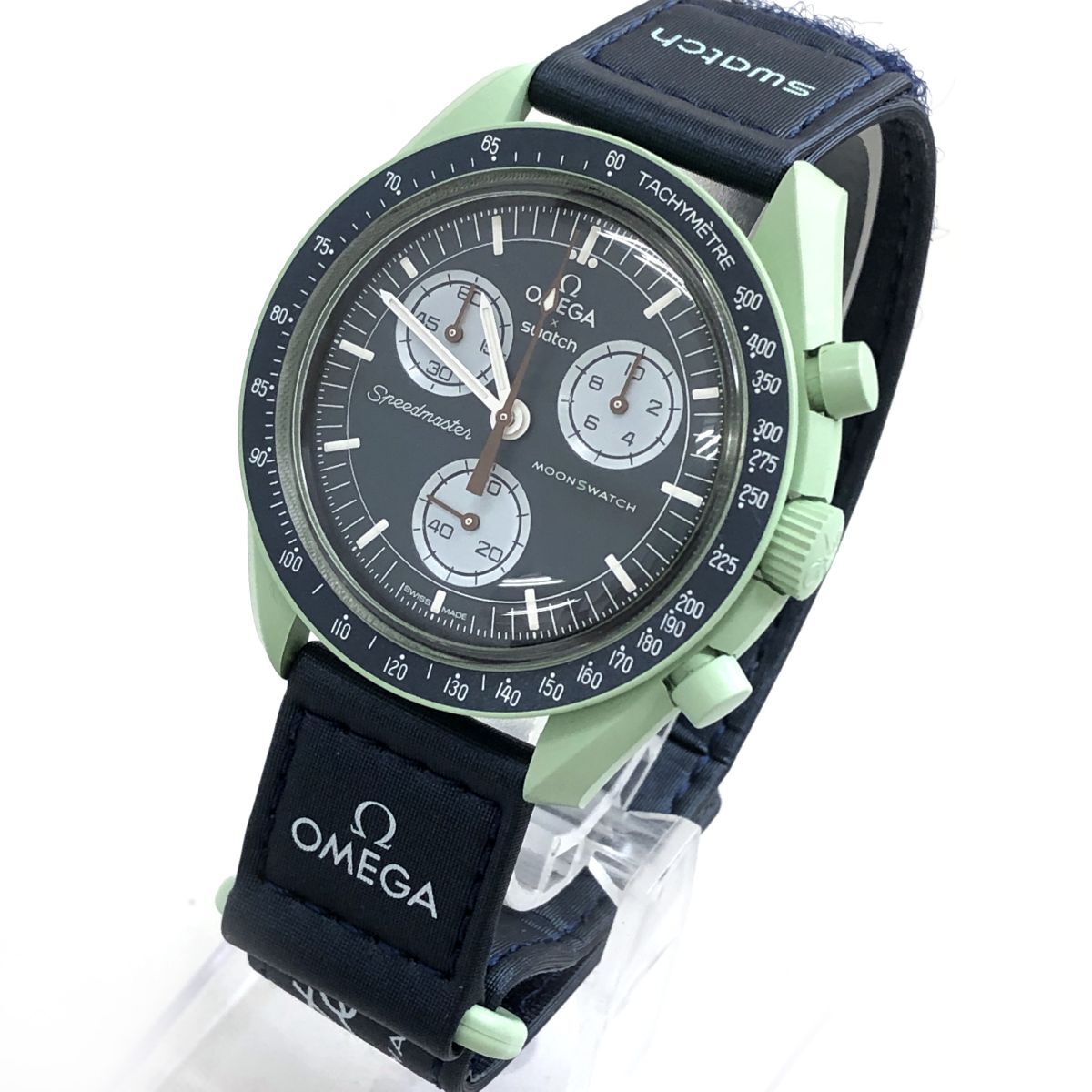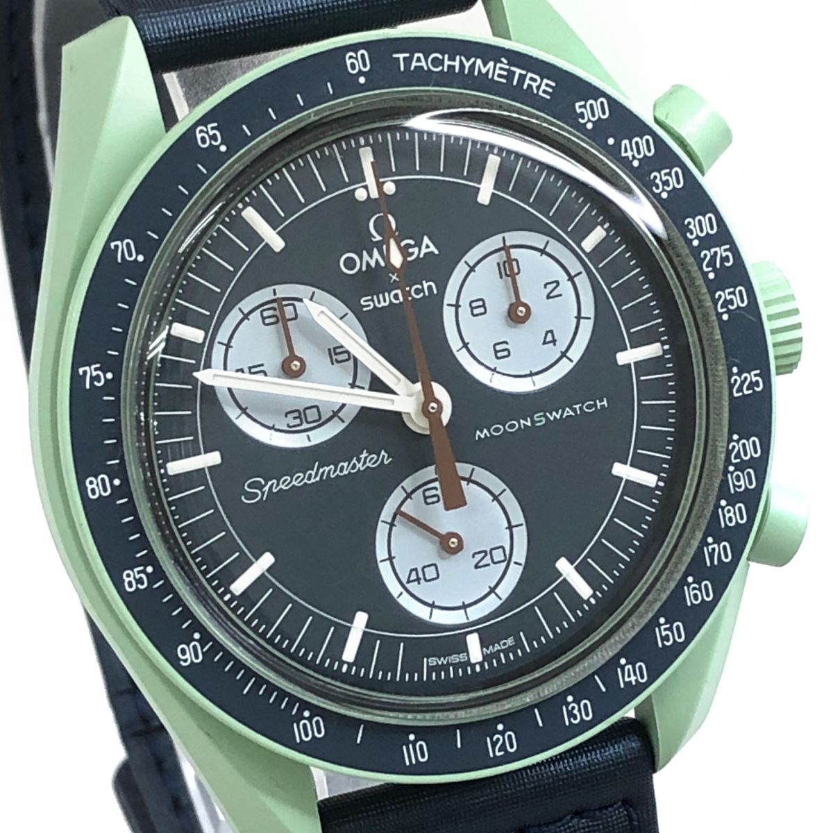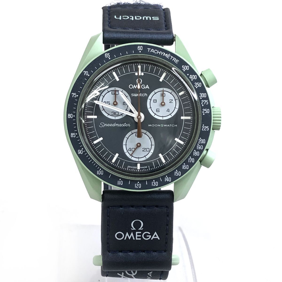 超美品 Swatch × Omega ムーン スウォッチ × オメガ MISSION ON EARTH アース S033G100 バイオセラミック 腕時計 クオーツ 動作確認済み